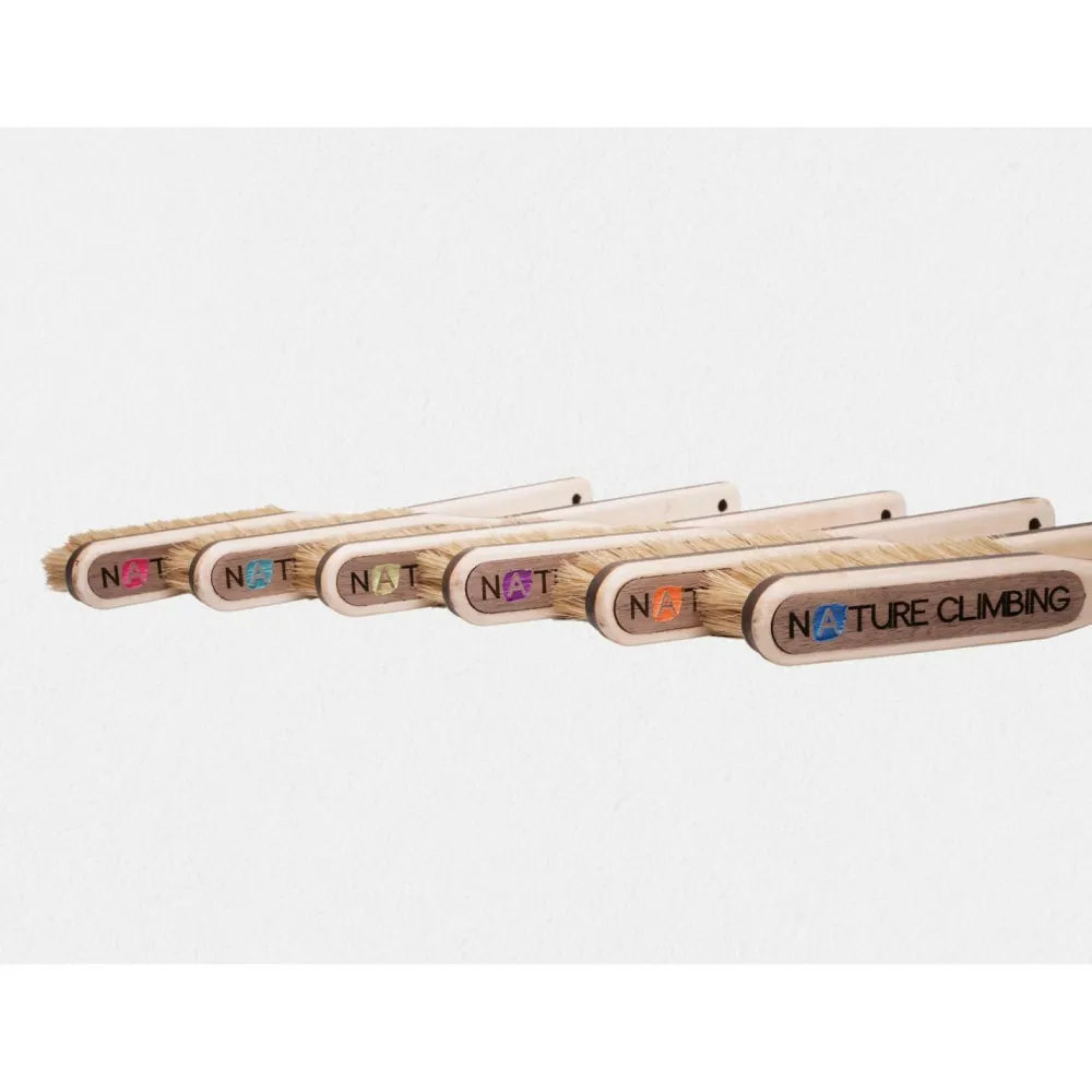 Die dänischen Natur- und Kletterfreaks von Nature Climbing mit eigener Werkstatt in Aarhus stellen ebendort auch die eigene Boulderbürste Brush her! Das hübsche Ding wird aus wunderschönem, FSC-zertifizierten Ahornholz, das an den Rändern dunkel gebrannt wurde, sowie einem Walnußholz-Einsatz (ebenfalls FSC-zertifiziert), der die Wildschweinborsten aufnimmt, hergestellt. Der Nachhaltigkeitsanspruch von Nature Climbing hört hier allerdings noch nicht auf, sondern hat auch eine soziale Komponente, denn die Borsten werden von Blinden Bürstenmachern angebracht, da eine Kooperation mit der dänischen Blinden-Organisation „Blindes Arbejde“ besteht. Vorbildlich!