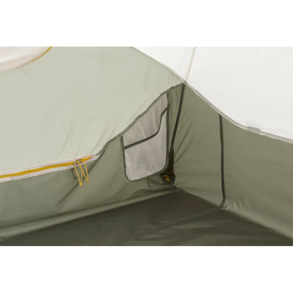 An beiden Seiten befindet sich ein Eingang, der sich weit öffnen lässt. In den Apsiden kann die Ausrüstung wettergeschützt untergebracht werden. Das atmungsaktive Innenzelt mit No-See-Um Moskitonetz lässt sich natürlich auch ohne die äußere Zeltplane aufstellen.