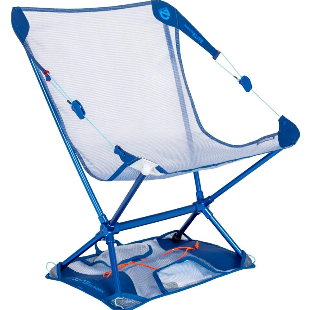 Der Moonlite Elite Reclining Camp Chair Campingstuhl von Nemo besteht aus einem leichten und robusten Rahmen aus Aluminium. Als Sitz- und Rückenfläche dient bluesign zertifiziertes Mesh-Gewebe. Für den Transport beim Trekking oder Bikepacking lässt sich der 526 g leichte Stuhl mit der einstellbaren Rückenlehne platzsparend zusammenlegen. Der niedrige Campingstuhl ist mit bis zu 113 kg belastbar.