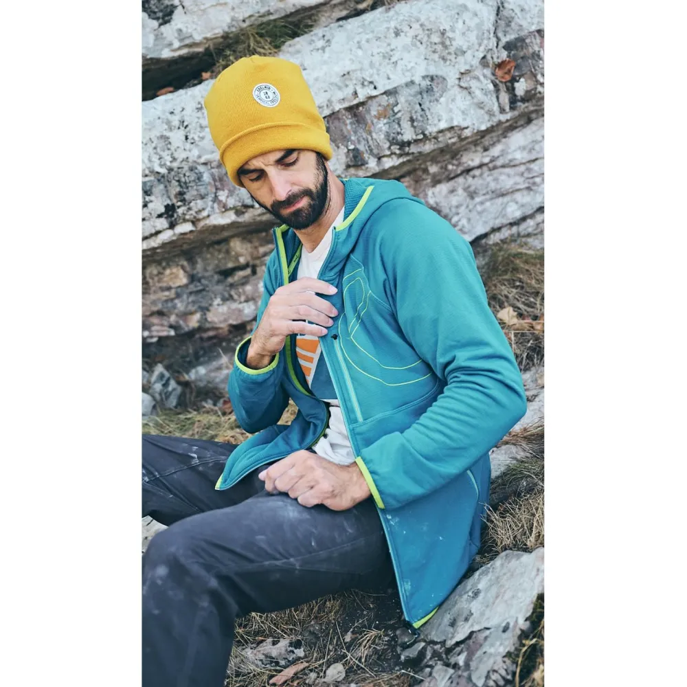 Die Nest Jacket von Edelrid ist der optimale Begleiter im Alltag und bei Deinen Outdoor-Abenteuern.Du kannst sie sowohl einzeln als Übergangsjacke, als auch als Midlayer unter Deine wasserdichte Regenjacke ziehen.Das leichte, schnelltrocknende Fleece-Material sorgt für eine angenehme Wärme bei guter Atmungsaktivität.Der hohe Kragen und die enganliegende Kapuze schützen Deinen Hals, Nacken und Kopf vor kühlen Temperaturen.Durch den Elasthan-Anteil und die Stretch-Bündchen an den Ärmeln und am Saum schränkt Dich die Nest Jacket nicht in Deinen Bewegungen ein.