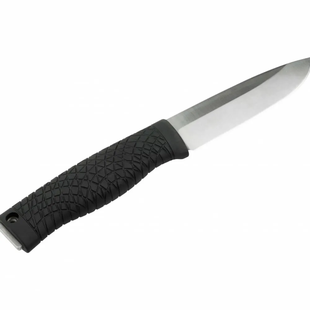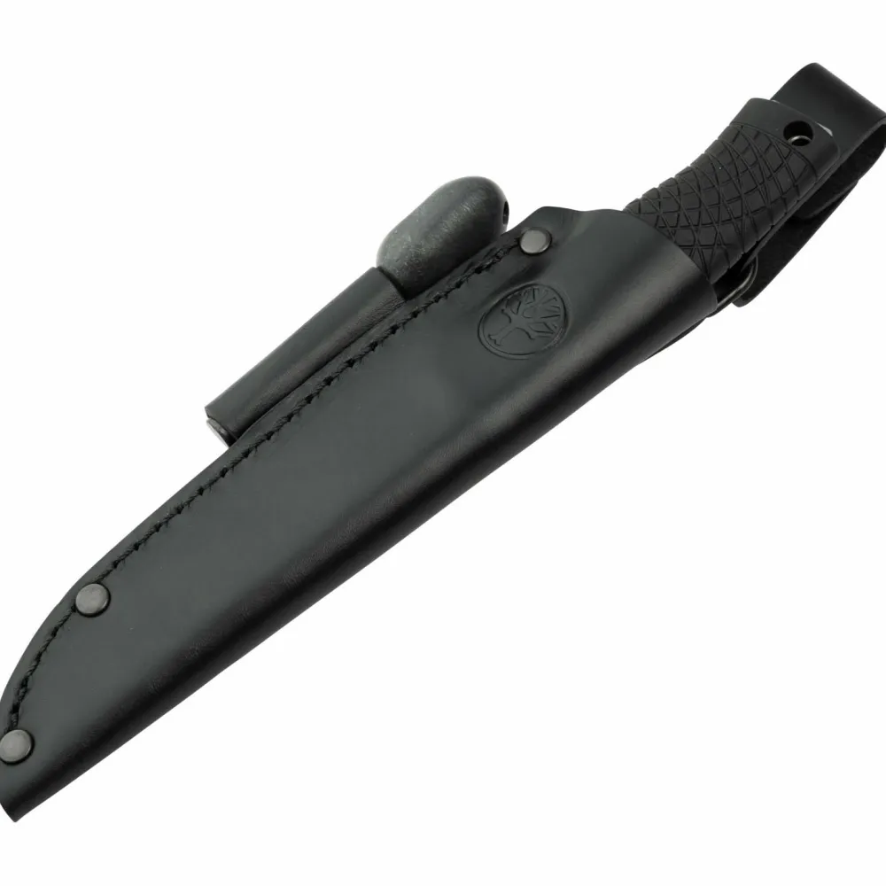 Böker hatten es sich zum Ziel gesetzt, ein kompromisslos funktionales Fahrtenmesser anzubieten; es sollte komplett in Deutschland gefertigt und zu einem moderaten Preis zu haben sein. Vorhang auf für das Bronco! Die Klinge aus pulvermetallurgischem CPM-3V ist wahnsinnig schnitthaltig und weist eine Härte von 62-63 HRC auf. Die hochgeschliffene Droppoint-Schneide eignet sich für alle Aufgaben aus dem jagdlichen Bereich ebenso wie für Schnitzen, Stöckefedern oder Batoning. An der robusten Köcherlederscheide ist ein Feuerstahl in einer Lederschlaufe untergebracht, der Dir das Feuermachen ohne Feuerzeug ermöglicht.