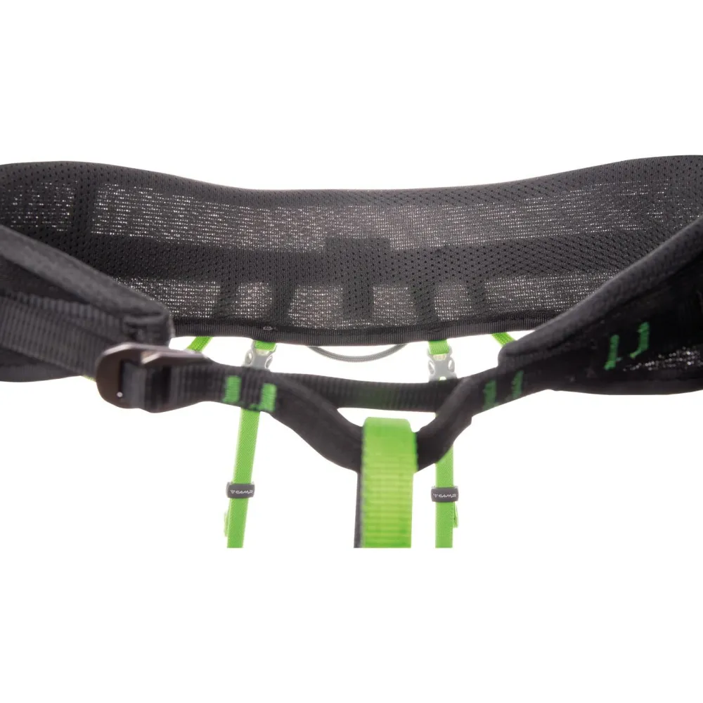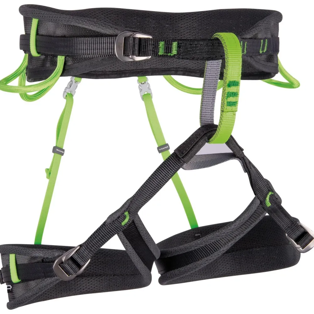 Der Escape von den italienischen Kletter- und Bergsport-Spezialisten von C.A.M.P. ist ein sehr leichter, komfortabler und klein zusammenpackbarer Klettergurt der Extraklasse, der sich in erster Linie an Felskletterer, Alpinisten und Mehrseillängen-Fans richtet. Das Material besteht aus einer gemeinsam gewebten Verbundstruktur aus Polyester- und Monofilament-Faserband, und das atmungsaktive Mesh-Innenfutter sorgt dabei für ein angenehmes Tragegefühl. Am Hüft- und an den Beingurten sind selbstsperrende Edelstahl-Schnallen angebracht, sodass Du den Gurt nicht nur optimal an Deine individuellen Bedürfnisse anpassen kannst, sondern auch ein Plus an Sicherheit mitgeliefert bekommst. Außerdem kommt der Escape mit vier differenzierten Materialschlaufen: vorne befinden sich zwei vorgeformte Schlaufen, hinten zwei Flexiblere.