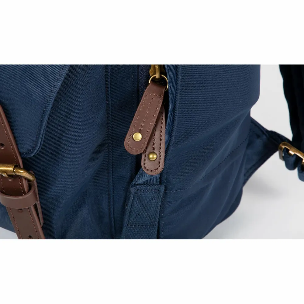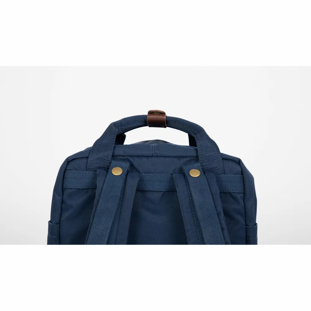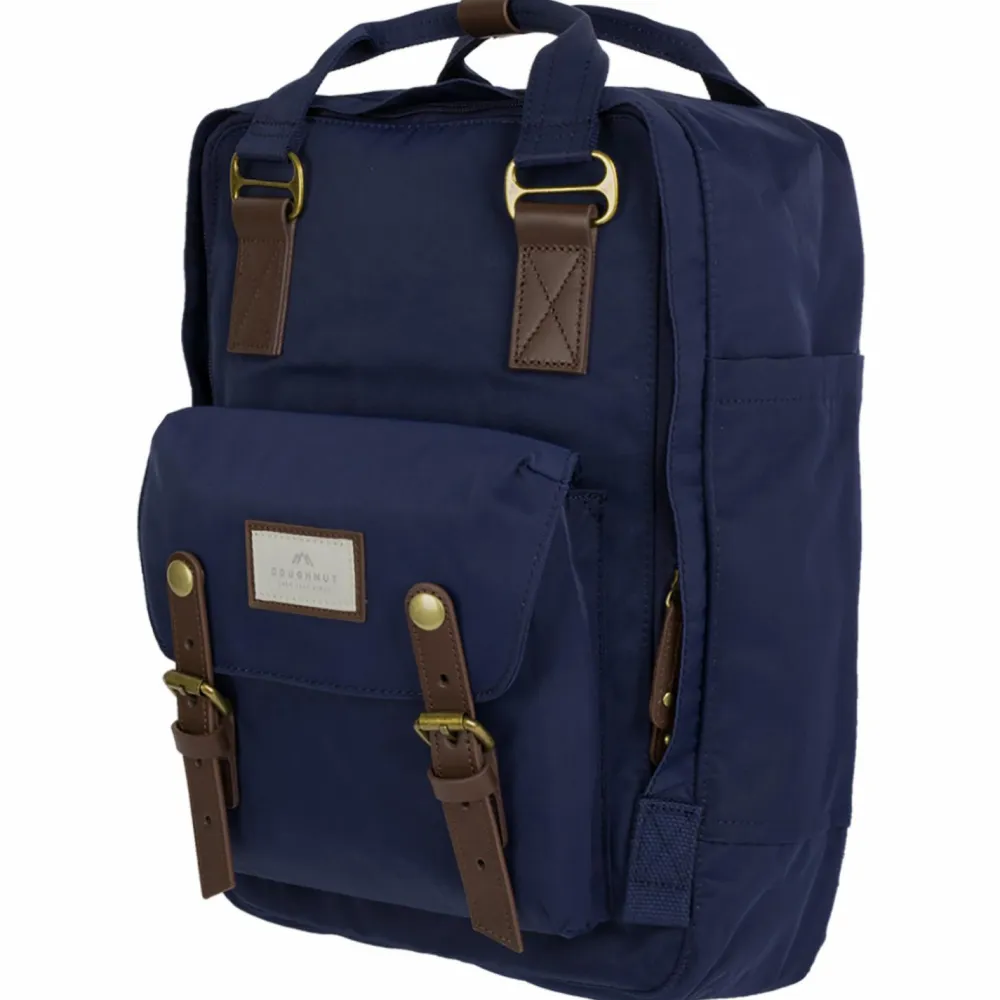 Doughnut setzt beim Macaroon 16 auf 420D Nylon Twill, das besonders strapazierfähig und wetterfest den Herausforderungen im Alltag trotzt. Applikationen aus echtem Leder verzieren den hübschen Rucksack und verstärken die kopfseitigen Tragegriffe und die Schnallen am Frontfach.
