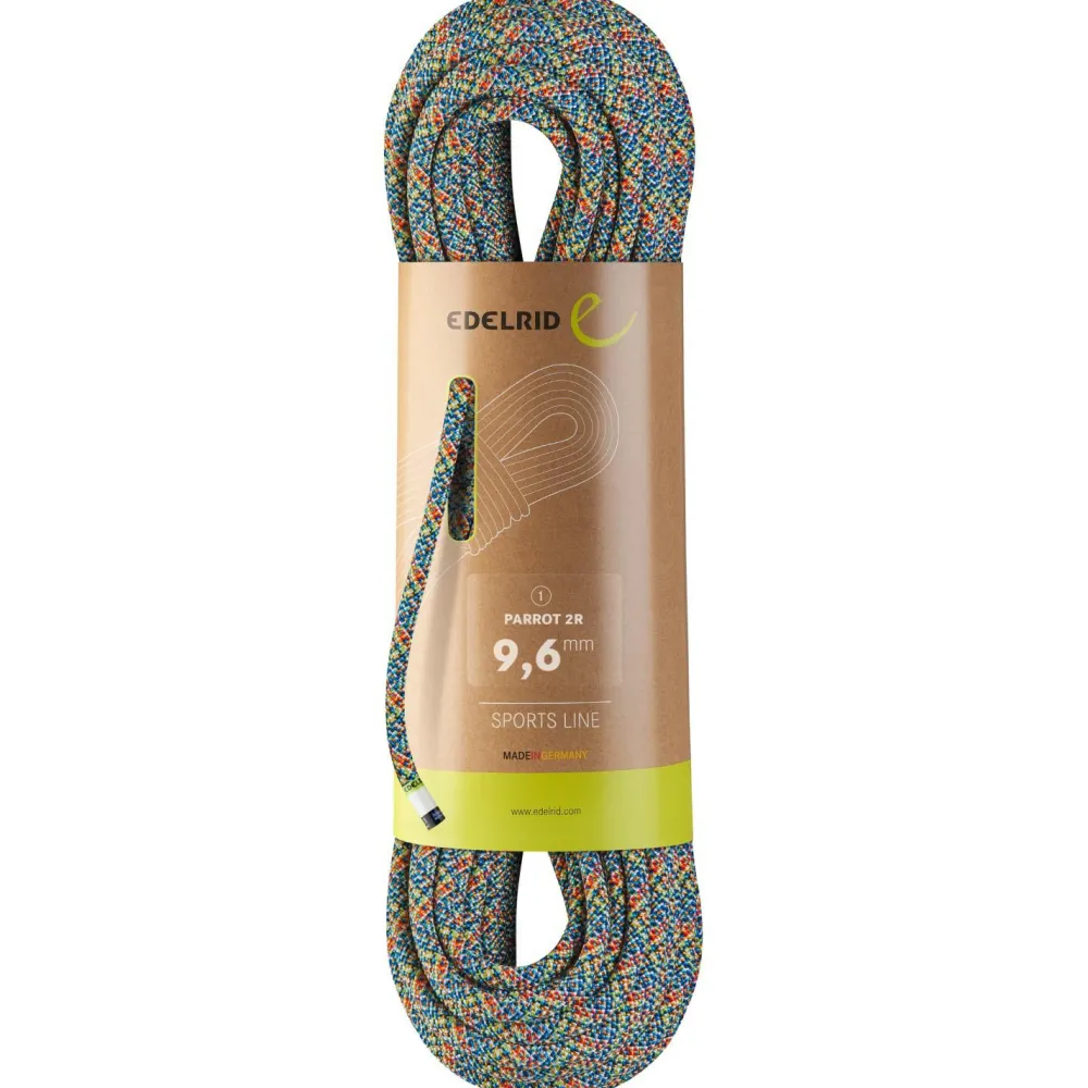 Das Parrot 2R 9,6 von Edelrid ist ein robustes Allroundseil mit 9,6 mm Durchmesser und ökologisch reduziertem Fußabdruck. Bei diesem Seil steht 2R („Reuse“) für die Wiederverwendung von hochwertigen Restgarnen aus hauseigener Produktion. Die Eigenschaften und Festigkeitswerte sind laut Hersteller mit denen eines vergleichbaren Seiles mit Garnen aus Erstverwendung identisch.
