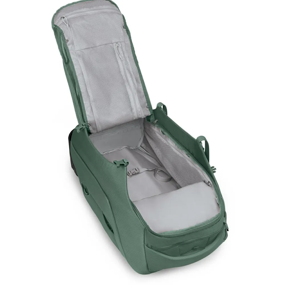 Atmungsaktives Mesh-Gewebe im Rückenbereich sorgt für einen raschen Abtransport von Feuchtigkeit. Die Rückenlänge lässt sich individuell an Deinen Rücken anpassen. Durch das verstaubare Tragesystem lässt sich die Osprey Sojourn 60 Reisetasche wie ein Trekkingrucksack tragen.