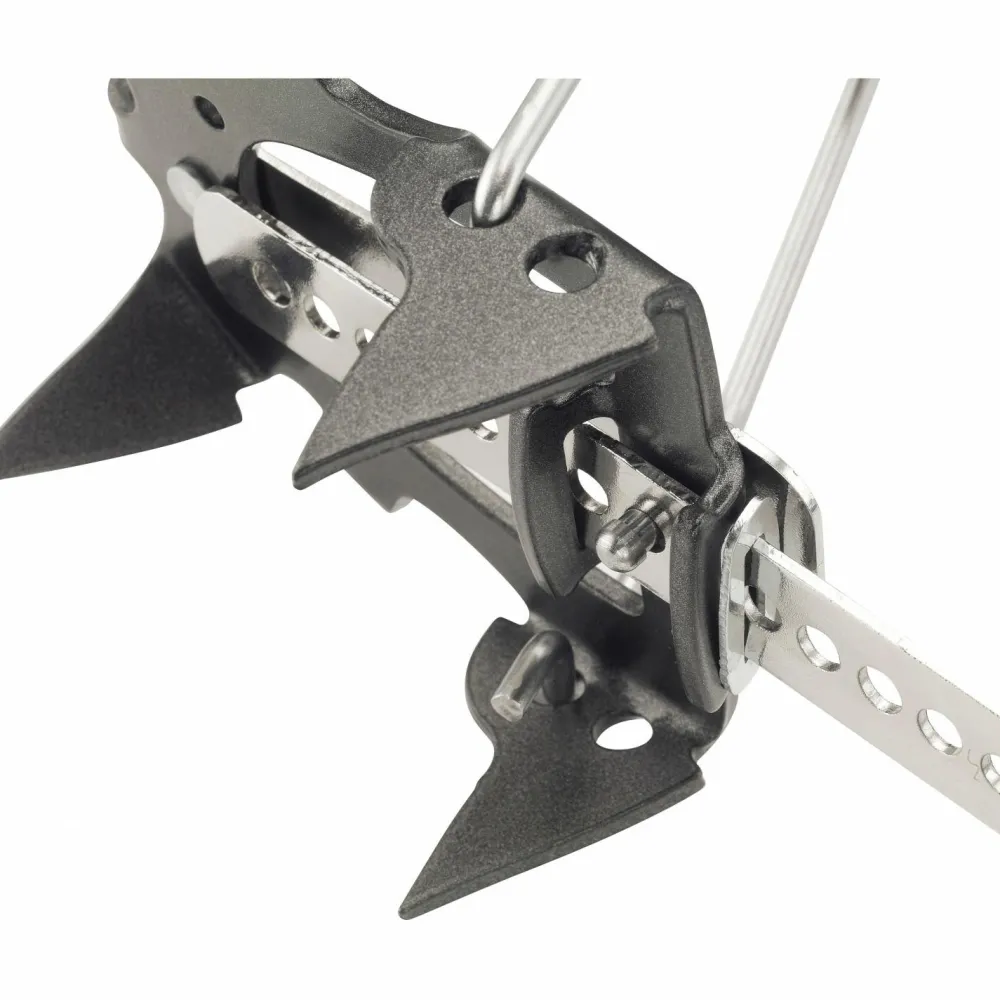 C.A.M.P. fertigt die Stalker Semi-Automatic Steigeisen aus robustem NiCrMo-Stahl und sorgt so für hohe Stabilität und exzellente Haltbarkeit. Die Steigeisen lassen sich perfekt an alle modernen Bergschuhe anpassen und werden mit der halbautomatischen Bindung fest am Fersensteg der Bergstiefel fixiert. Mit dem Steg zwischen vorderer und hinterer Platte lassen sich die Steigeisen perfekt an die Schuhgröße anpassen. Dafür ist kein Werkzeug notwendig.