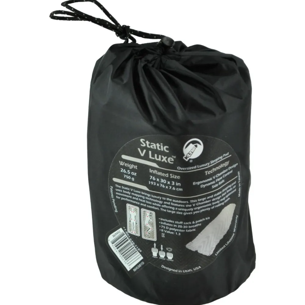 Breiter, Länger, Dicker – das wären kurz und bündig die Vorteile der Klymit Static V Luxe gegenüber den kleineren und leichteren Modellen der Serie. Wenn es jedoch nicht ganz so sehr auf das Gewicht ankommt und der Komfort zählt, dann ist die V Luxe genau die richtige Wahl! Die Isomatte mit den großzügigen Abmessungen bietet dank Body Mapping Konstruktion und V-Kammern Design besten Schlafkomfort für erholsame Nächte im Zelt oder unter freiem Himmel. Die wellenförmigen Lamellen speichern nicht nur zuverlässig Wärme, sondern passen sich auch ergonomisch der individuellen Körperform an. Die seitlichen Abgrenzungen sorgen dabei für zusätzliche Stabilität und eine ruhige Liegeposition. So zeichnet sich die Static V Luxe als exzellente Isomatte für eine Vielzahl an Outdoor-Unternehmungen aus und bietet Bequemlichkeit vom Feinsten – das Ganze schließlich im nach wie vor handlichen Packmaß!