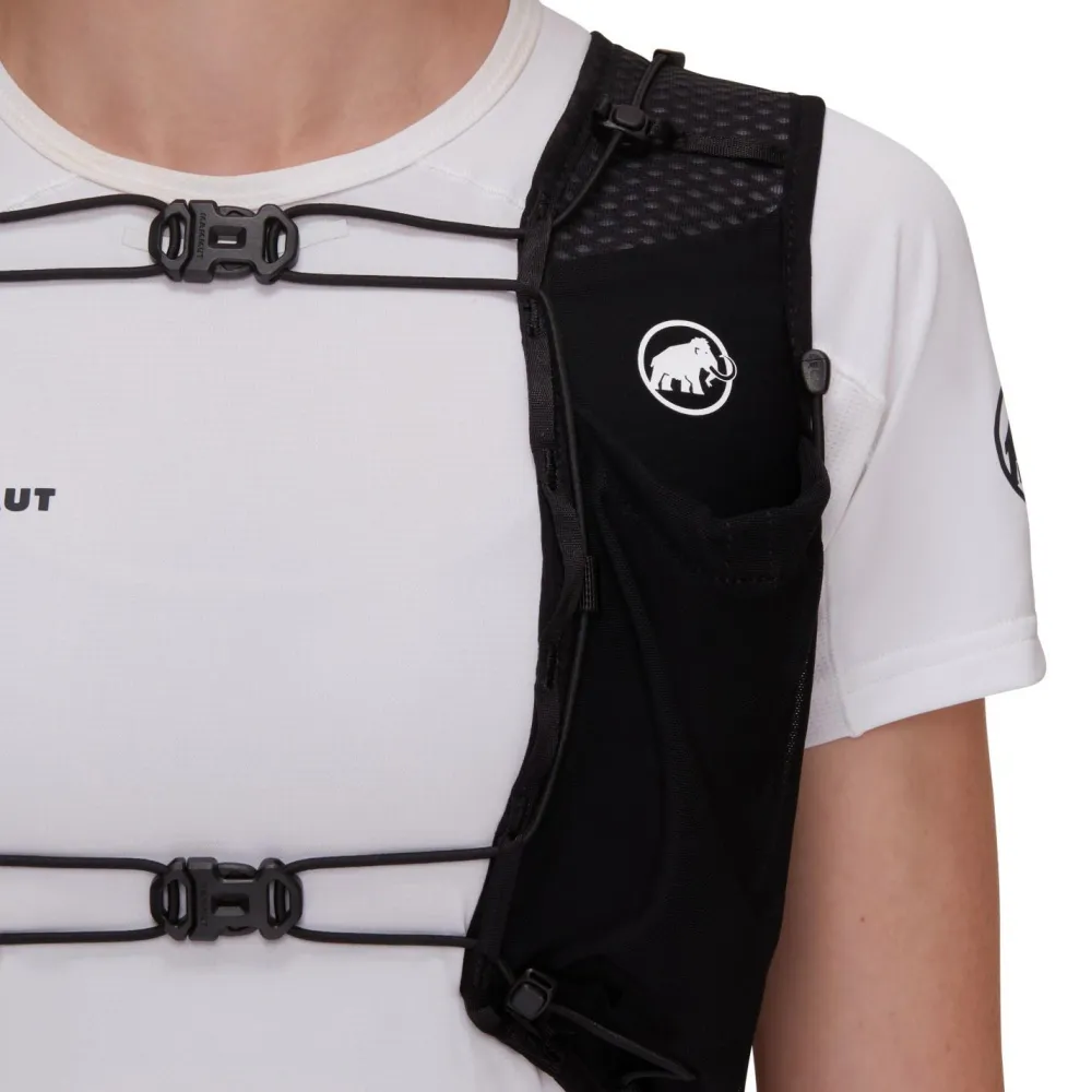 Der Trion 15 Kletterrucksack verfügt über seitliche Kompressionsriemen und ist für den Einsatz von Trinksystemen vorbereitet. Er wird umweltfreundlich aus recycelten Rohstoffen gefertigt und ist bluesign und Fair Wear zertifiziert. Die wasserabweisende DWR-Behandlung an der Oberfläche ist frei von PFC und sorgt für einen guten Nässeschutz beim Wandern und Klettern. Praktische Halterungen für Eisgeräte, Trekkingstock, Kletterseil und zwei Soft-Flask Trinkflaschen ergänzen den sportlichen Mammut Rucksack.