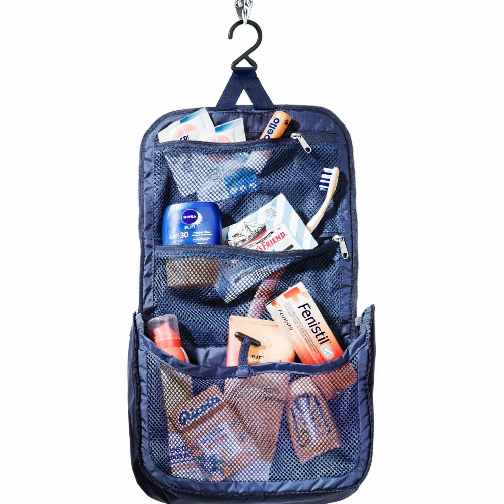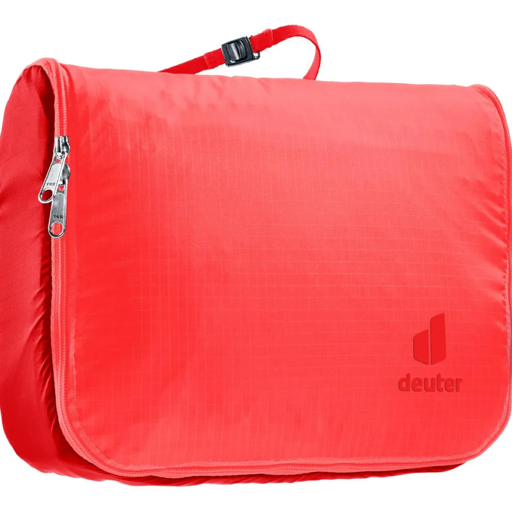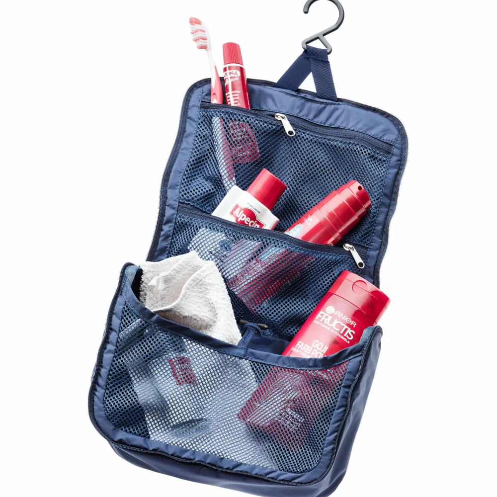 Verstaut die Hygieneartikel übersichtlich angeordnet und lässt sich praktisch aufhängen: der Wash Center Lite II Kulturbeutel von deuter! Drei Reißverschlussfächer innen sorgen dafür, dass Zahnbürste, Creme, Shampoo und Co. kompakt verstaut werden können.