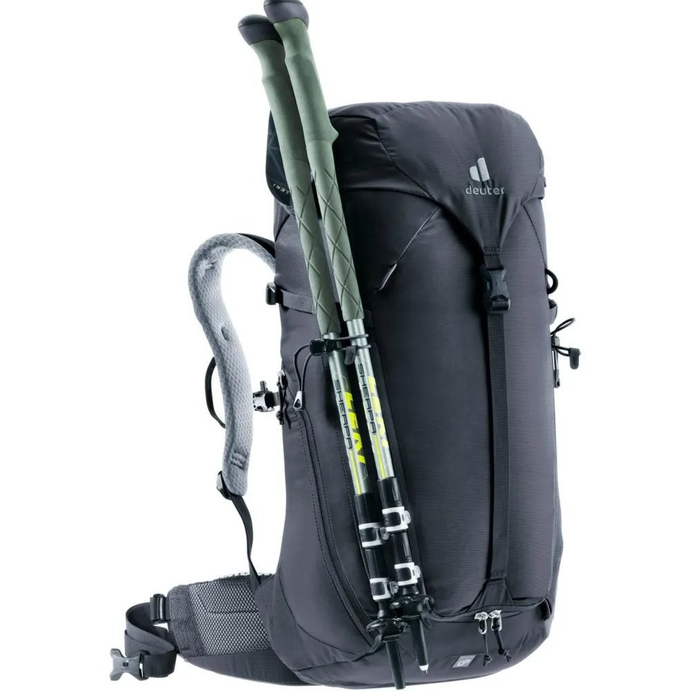 Variabel und verlässlich am Berg unterwegs: der Women’s Trail SL 28 Tourenrucksack von Deuter! Dieser sportliche Bergspezialist ist perfekt für Bergsportlerinnen und Klettersteiggeherinnen, die einen nah am Körper sitzenden, perfekt ausgestatteten und zugleich gut belüfteten Rucksack schätzen. Seine ergonomische Konstruktion sitzt nah am Körper und verteilt das Tragegewicht dank des flexiblen Delrin U-Rahmens optimal. Die robusten Materialien erweisen sich als sehr widerständig gegen Witterung und Abnutzung.