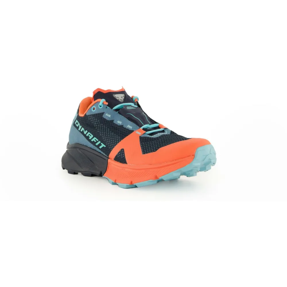 Unterstützt werden Läufer außerdem durch die Ultra Zwischensohle und das dämpfende Fußbett. Im Fersenbereich und an den Fußspitzen sind die Trailrunningschuhe extra verstärkt, wodurch gute Stabilität und Robustheit im Gelände gewährleistet werden. Über der dünn gepolsterten Zunge sorgt die flache Schnürung für optimale Anpassungsmöglichkeiten. Das Schnürsystem ist abgedeckt, damit sich die Schnürsenkel beim Laufen im Gelände nicht verhaken oder lösen können. Die Sprengung beträgt beim leichten Ultra 100 von Dynafit 6 mm und bietet eine gute Mischung aus Komfort und Präzision beim Trailrunning.