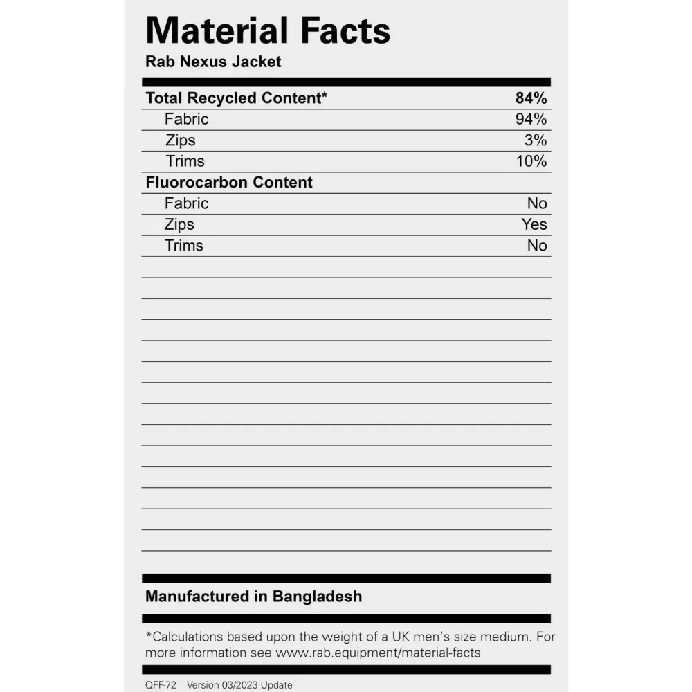 Das Hauptmaterial besteht zu 100 % aus recyceltem, extrem leichtem Material. Die körpernahe Passform und der Stretchanteil machen die Nexus Jacket zu einer flexiblen Fleecejacke für sportliche Bewegungen. Die Kunstfasern sind atmungsaktiv und temperaturausgleichend. Das bedeutet, dass die Jacke die Körperwärme effektiv speichert und gleichzeitig durchlässig für Schweißdampf ist. Damit leistet die Nexus Jacket sowohl bei den ersten Schritten in der kühlen Morgenluft als auch beim schweißtreibenden Aufstieg in der Mittagssonne gute Dienste.