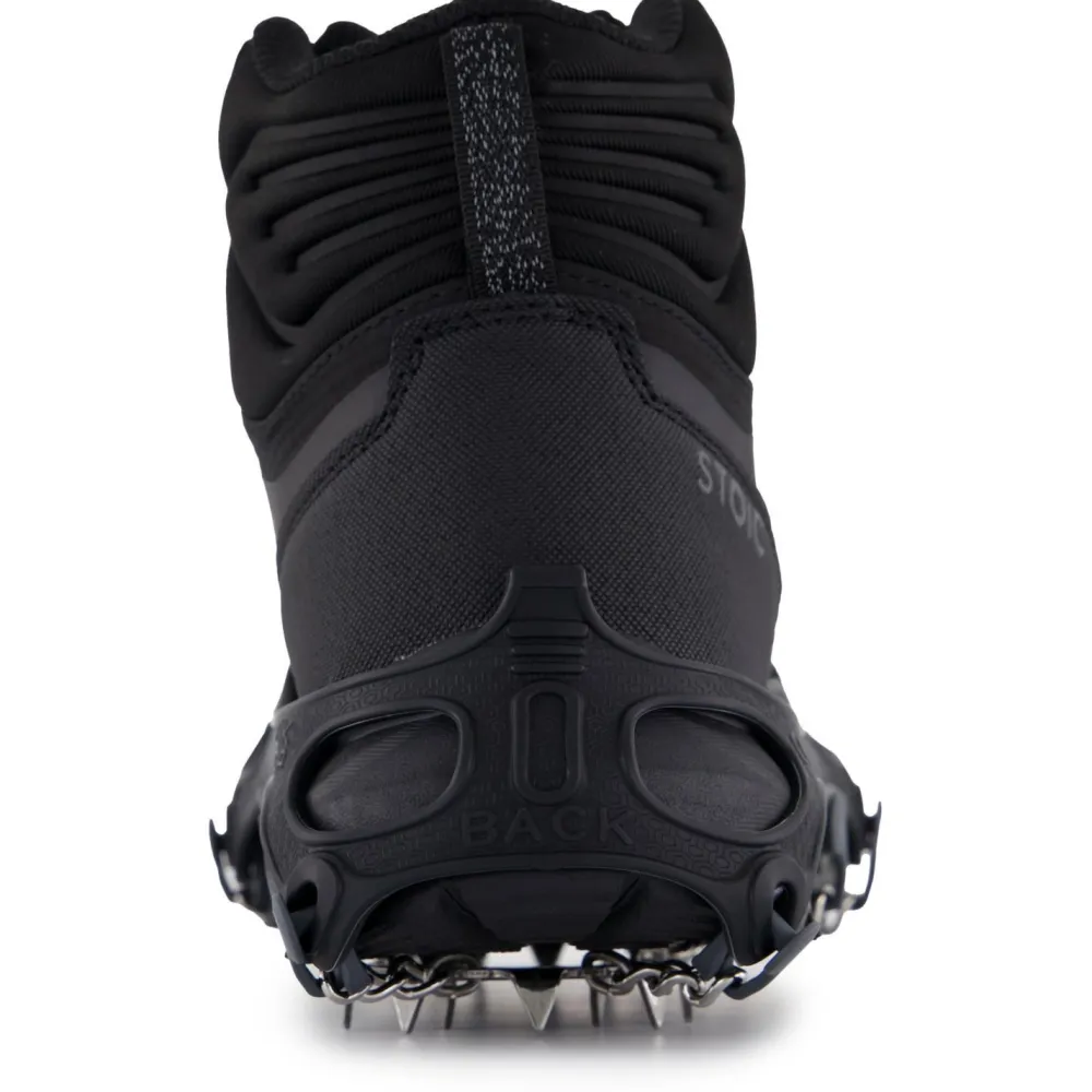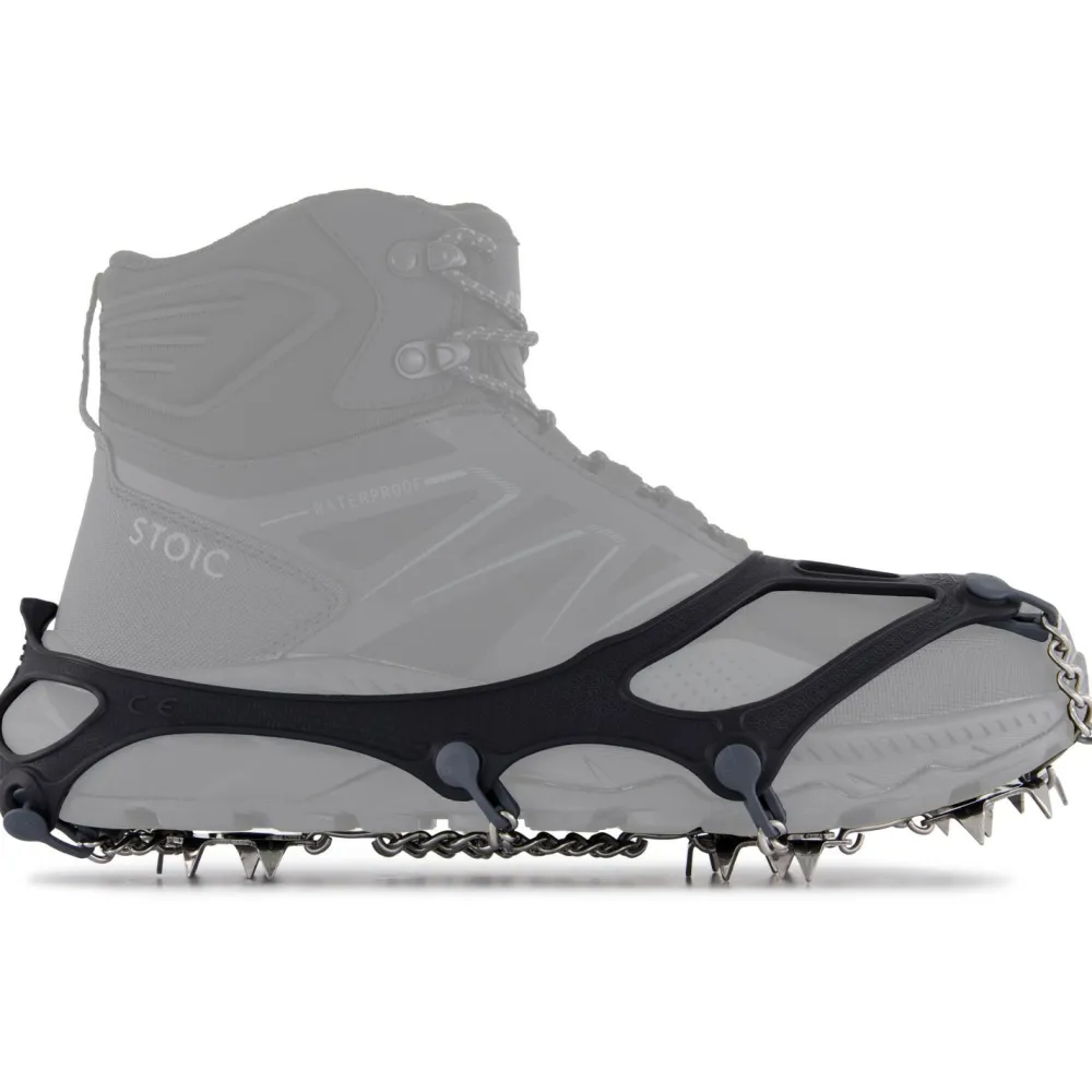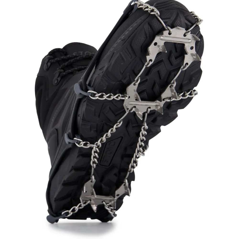 Sie lassen sich dank ihrer durchdachten Konstruktion mit dehnbarem Elastomer schnell und einfach über die Schuhe ziehen. Die Kombination aus Kettenelementen, Verbindungsteilen und Platten aus hochresistentem Stahl mit Spikes auf der Unterseite machen die stabile und durchdachte Konstruktion komplett. Egal ob Dir Outdoor Running, Trekking, leichter Alpinismus, Nordic Walking oder ein Spaziergang auf dem Programm steht, die Schuhkrallen sind perfekt für die unterschiedlichsten Freizeitaktivitäten und Arbeiten im Freien.