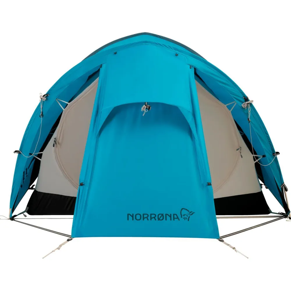 Das Femund 4-Season Tunnel Tent 3P von Norrøna begleitet Dich bei Touren das ganze Jahr über. Dieses Tunnelzelt ist für die unterschiedlichsten Abenteuer bestens geeignet und punktet dabei vor allem durch seine gute Platzausbeute und die hochwertige Verarbeitung. Außenzelt und Boden bestehen bei diesem Modell aus recyceltem Polyester und sind nicht nur widerstandsfähig, sondern auch wind- und wasserdicht. Zusätzlich ist das Material beidseitig silikonbeschichtet, wodurch das Zelt auch für anhaltend schlechtes Wetter und sogar Schneefall geeignet ist. Gleichzeitig ist Polyester gegenüber UV-Strahlung vergleichsweise unempfindlich. Das Innenzelt besteht hingegen aus Polyamid und ist nicht zuletzt durch mehrere Mesh-Einsätze gut belüftet und atmungsaktiv.