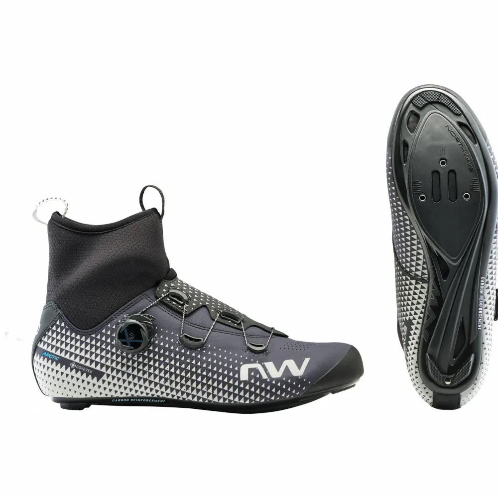 Auch wenn die Bedingungen in der kühlen Radsaison nicht perfekt sind, sind die Celsius R Arctic GTX Radschuhe von Northwave dennoch bereit für den Einsatz auf dem Rad. Der neue Easyfit Climaflex Kragen im Einstiegsbereich kombiniert die extreme Elastizität der hochwertigen Membran mit der hohen Wärmedämmung des Neoprens und erhöht so die Mobilität und den Schutz. Um eine perfekte Kraftübertragung auf die Pedale zu gewährleisten, ist der Schuh mit einer faserverstärkten NRG Air Carbon Sohle mit einem Steifigkeitsindex von 8,0 ausgestattet. Feststellen und an die individuelle Fußform anpassen, lassen sich die Radschuhe mit einem Drehverschluss. Wenn es schnell gehen muss, kann die Passform so auch auf dem Bike eingestellt werden.