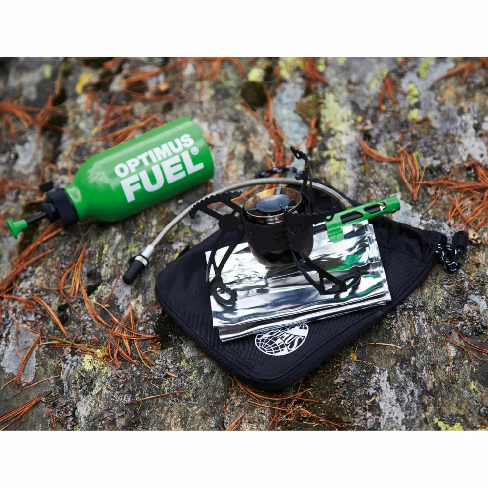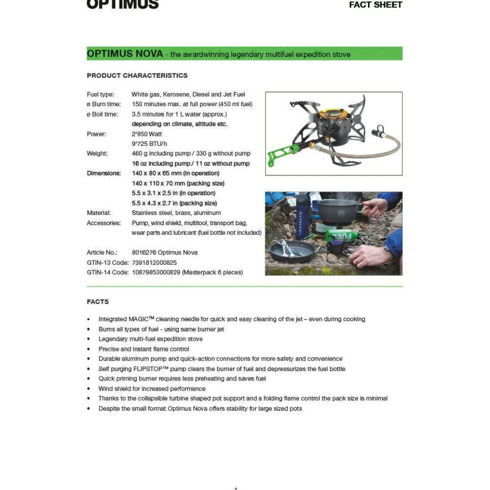 Ein bewährter Kocher für alle Lebenslagen: der Nova von Optimus! Mit dem klein verpackbaren Mehrstoffkocher lassen sich in kürzester Zeit leckere Gerichte zubereiten – denn dank schnellzündendem Brenner lässt das Essen nicht lange auf sich warten. Der mitgelieferte Windschutz verbessert dabei die Effizienz und hilft, Brennstoff zu sparen. Der Optimus Nova ist ein echtes Multitalent, das mit Benzin, Diesel oder Kerosin funktioniert. Die integrierte Aluminiumpumpe nimmt dabei von selbst den Druck aus der Brennstoffflasche (nicht enthalten!) – so kann im Rucksack kein Brennstoff entweichen. Eine magnetische Reinigungsnadel ermöglich zudem eine schnelle und unkomplizierte Reinigung. Die Kombination aus einklappbarer Topfauflage und klappbarer Flammenregelung hält das Packmaß des Nova erfreulich gering, so dass der Kocher problemlos ins Gepäck passt. Mit dem Nova gelingt jedes Outdoorgericht – nur mit der Steinofenpizza könnte es schwierig werden!