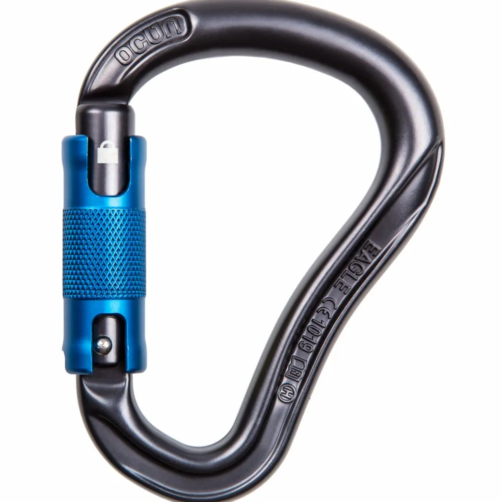 Überall im Kletter-und Bergsport, wo besonders hohe Sicherheit benötigt wird, punktet der Eagle HMS Triple von Ocun. Der Karabiner verriegelt beim Loslassen des Schnapper automatisch; sein 3-Wege Sicherheitsverschluss öffnet sich nicht bei unbemerktem Reiben, wie es bei einem herkömmlichen Schraubkarabiner passieren kann. Erst durch gleichzeitiges Drehen, Herunterziehen und Drücken gibt der Eagle HMS Triple seinen Verschluss wieder frei – eine hervorragende Sicherheitsvorkehrung, die sich auch einhändig gut bedienen lässt.