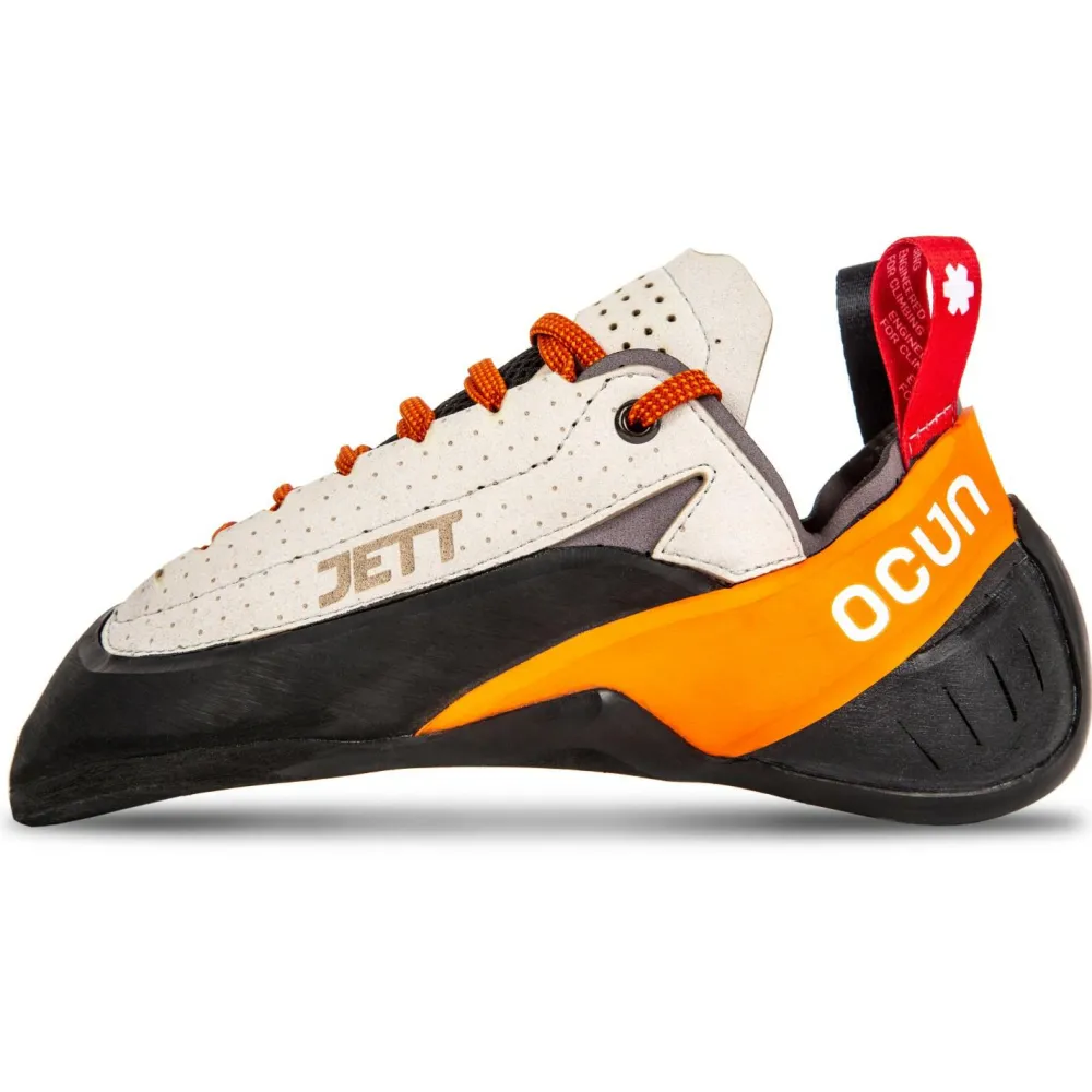 Der Ocún Jett LU ist Dein Schuh für technisch anspruchsvolle Mehrseillängen und lange Sportklettertouren. Die mittlere Asymmetrie und das größere Volumen im Vorfußbereich sorgen für Komfort, während die steifere Zwischensohle Dir Stabilität auf kleinen Tritten gibt. Die CAT Rubber 1.5‑Sohle bietet Dir zuverlässige Reibung, selbst auf winzigen Kanten. Eine breite, atmungsaktive Zunge und ausgewählte Materialien garantieren, dass Du auch bei langen Einsätzen bequem unterwegs bist.