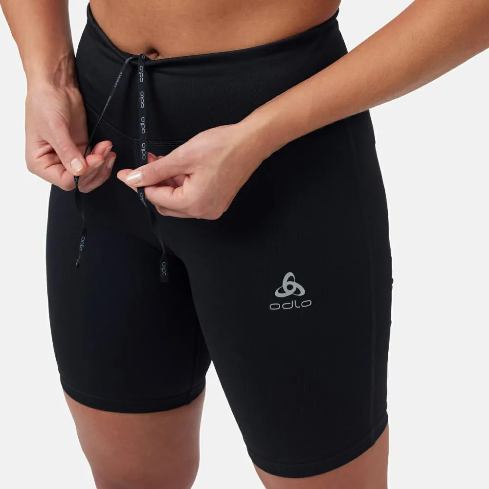 Strechige Laufhose für warme Tage – die Women’s Tights Short Essential Polyester von Odlo ist eine ideale Wahl für Lauftrainings, die nächste Yoga-Session oder andere sportliche Aktivitäten. Der elastische Stoff aus recyceltem Polyester und Elasthan schmiegt sich optimal an den Körper an und bietet volle Bewegungsfreiheit. Durch den Kordelzug am Saum kann nichts drücken oder verrutschen. In der kleinen Innentasche kann der Hausschlüssel beim Laufen untergebracht werden.