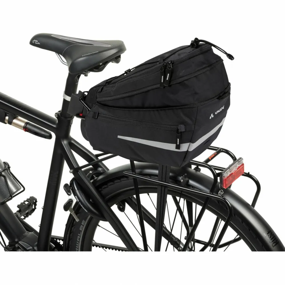 Perfekt für actionreiche und schnelle Touren: die Off Road Bag M von Vaude hält richtig was aus und packt alles ein, was auf dem Sattel schnell zur Hand sein soll!Die Lenkertasche ist aus einem robusten Kunstfasergewebe mit PFC-freier Eco Finish DWR gefertigt. Das 7 Liter Hauptfach kann bei Bedarf ganz unkompliziert per Erweiterungsbalg um weitere 3 Liter vergrößert werden. Eine Zip-Deckeltasche, ein Zip-Innenfach, Seitentaschen und eine praktische Gepäckspinne sind auch mit am Start. Per abnehmbarem Schultergurt kann die Tasche auch abseits vom Bike getragen werden.