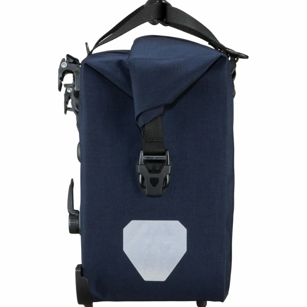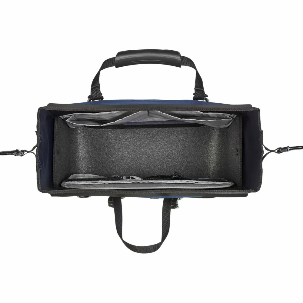 Die Gepäckträgertasche wird über das unkompliziert montierbare Quick-Lock 2.1 Halterungssystem am Gepäckträger befestigt und kann in Windeseile ein- und ausgehängt werden. Das reiß- und abriebfeste Cordura Obermaterial ist absolut wasserdicht und kommt mit zusätzlichem Kantenschutz. Das Hauptfach kommt mit einem Volumen von 21 Litern und wird durch ein internes Organizerfach unterstützt. Ein abnehmbarer, gepolsterter Schultergurt, ein Tragegriff und praktische Standfüße sind ebenfalls mit dabei. Tip top!