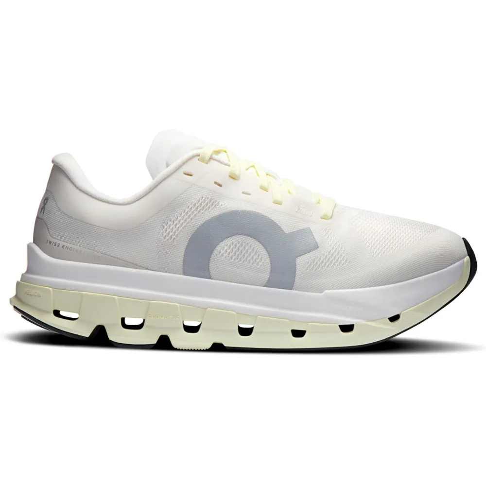 Der Women’s Cloudflow 5 von On ist ein Laufschuh, der speziell für schnelle Intervalle und intensive Einheiten entwickelt wurde. Im Herzen des Schuhs steckt die Helion HF Hyper Foam – ein besonders reaktives Dämpfungsmaterial, das für maximale Energierückgabe sorgt. Diese Zwischensohle ist nicht nur leicht, sondern auch extrem reaktiv, was Dir bei jedem Schritt einen spürbaren Vortrieb gibt.