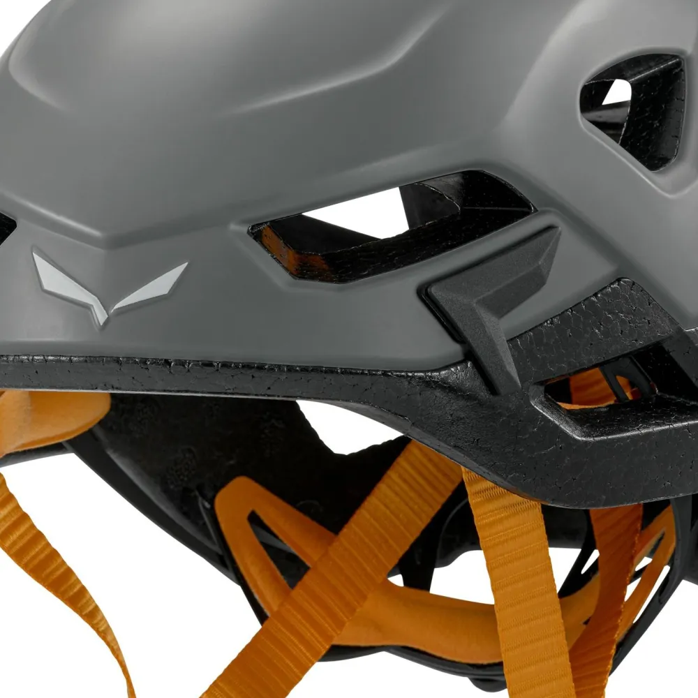 Zuverlässiger Schutz, schlankes Design und solide Performance: Der Kletterhelm Aria Helmet von Salewa verfügt über eine gut belüftete Konstruktion mit einer robusten PC-Außenschale aus recyceltem Polycarbonat und einer Innenschale aus geformtem EPP-Schaumstoff für hohen Aufprallschutz und Energieabsorption bei sehr geringem Eigengewicht.