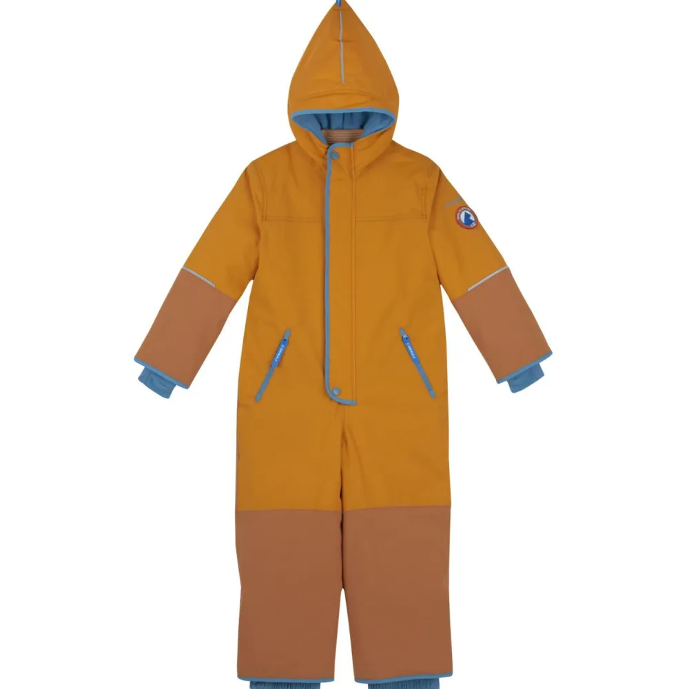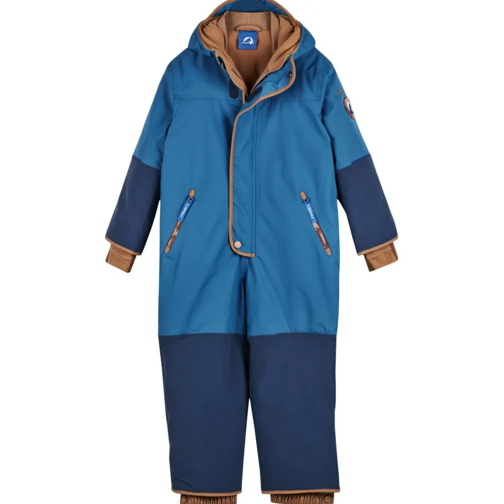 Die Zipfelmütze ist immer mit dabei und schützt vor kalten Ohren. Elastische Bündchen an den Arm- und Beinenden schließen den Overall ab und verhindern das Eindringen von kalter Zugluft. Die Beinenden lassen sich außerdem enger stellen. In den beiden Fronttaschen mit Reißverschluss findet wichtiger Kleinkram einen sicheren Platz. Angenehm warm und trocken bleibt der empfindliche Kinderkörper, beim Toben in Schnee und Kälte, mit dem Kid’s Husky Haalari von Finkid.