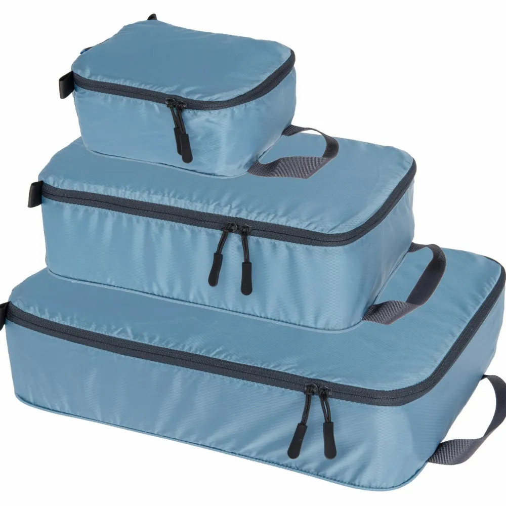 Mit diesem Packing Cube Light – Discrete Set von Cocoon hast Du eine ausgezeichnete Ordnung in Deinem Reisegepäck. Die Packsäcke sind blickdicht und lassen sich durch einen rundum Reißverschluss öffnen. Durch einen angenähten Handgriff lassen sich die Packing Cubes ausgezeichnet herausheben. Das Material ist super dünn, wodurch die Cubes sehr leicht sind. Dadurch, dass jede Größe doppelt so groß ist, wie davor, lassen sich die Taschen einwandfrei in einander lagern.