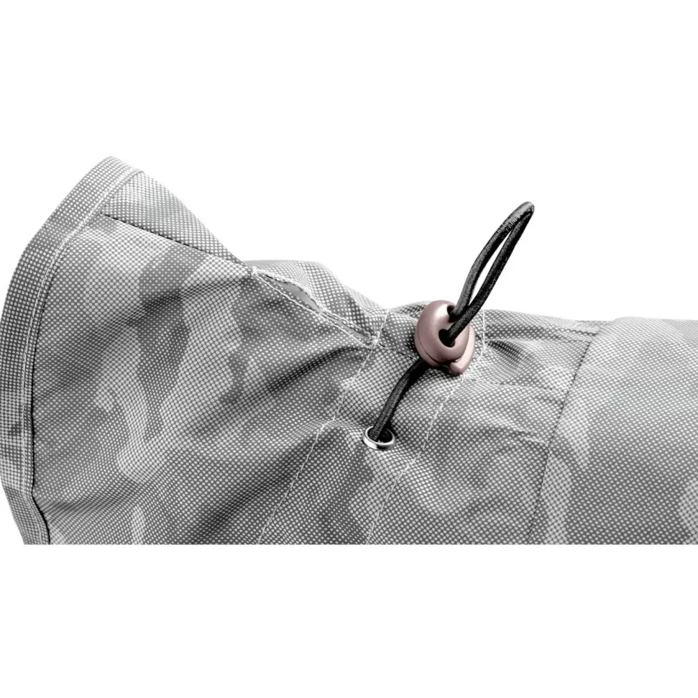 Er lässt sich mit Gummizug und Klettverschlüssen individuell verstellen und elastische, verstellbare Bänder verhindern ein Verrutschen an den Hinterläufen. Der Mantel eignet sich sowohl für Halsband- als auch für Geschirrträger, denn es gibt zwei Öffnungen zum Einhaken der Leine.