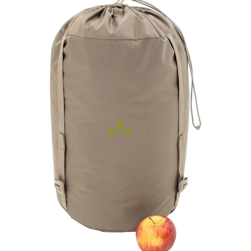Der Schlafsack sorgt mit seiner Sensofiber Füllung für angenehmen Schlafkomfort und tolle Isolation. Außerdem trocknet der Schlafsack zügig und ist ausgesprochen pflegeleicht. Für den platzsparenden Transport liefert Vaude einen Packsack mit Kompressionsriemen gleich dazu.