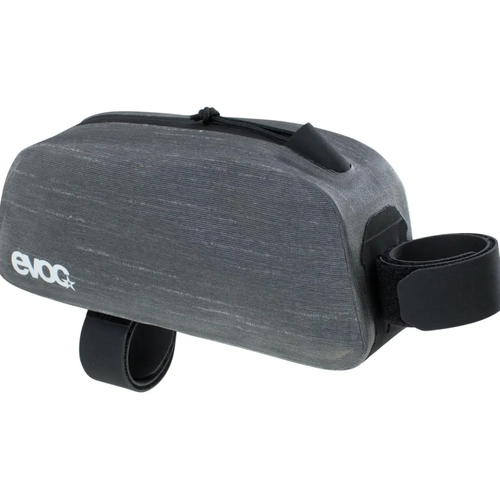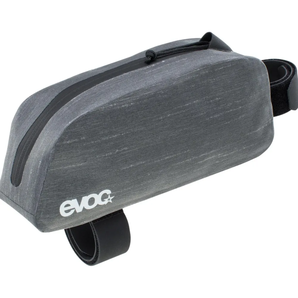 Die perfekte Ausstattung für’s Bikepacking, genau auf Deine Bedürfnisse abgestimmt kannst Du Dir zusammenstellen mit der Bikepacking-Linie von Evoc! Im Fall der Top Tube Pack Waterproof handelt es sich um eine Rahmentasche zur Befestigung am Oberrohr. Das funktioniert unabhängig von der Rad-Gattung, Du kannst die Tasche an deinem Mountainbike, dem Rennrad, dem Gravelbike oder deinem Commuter anbringen und darin Dinge transportieren, die vor Regen und Schmutz geschützt werden sollen. Das Volumen der Tasche beträgt 0,8 Liter.