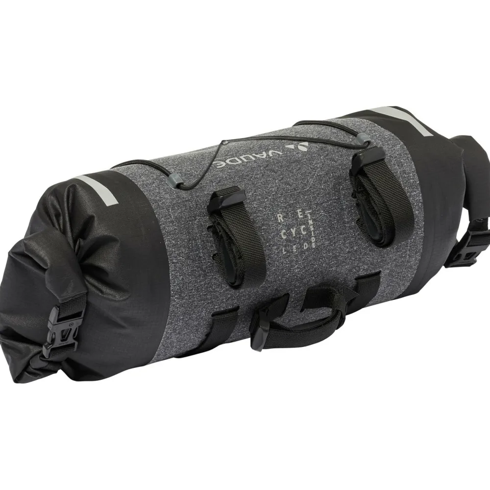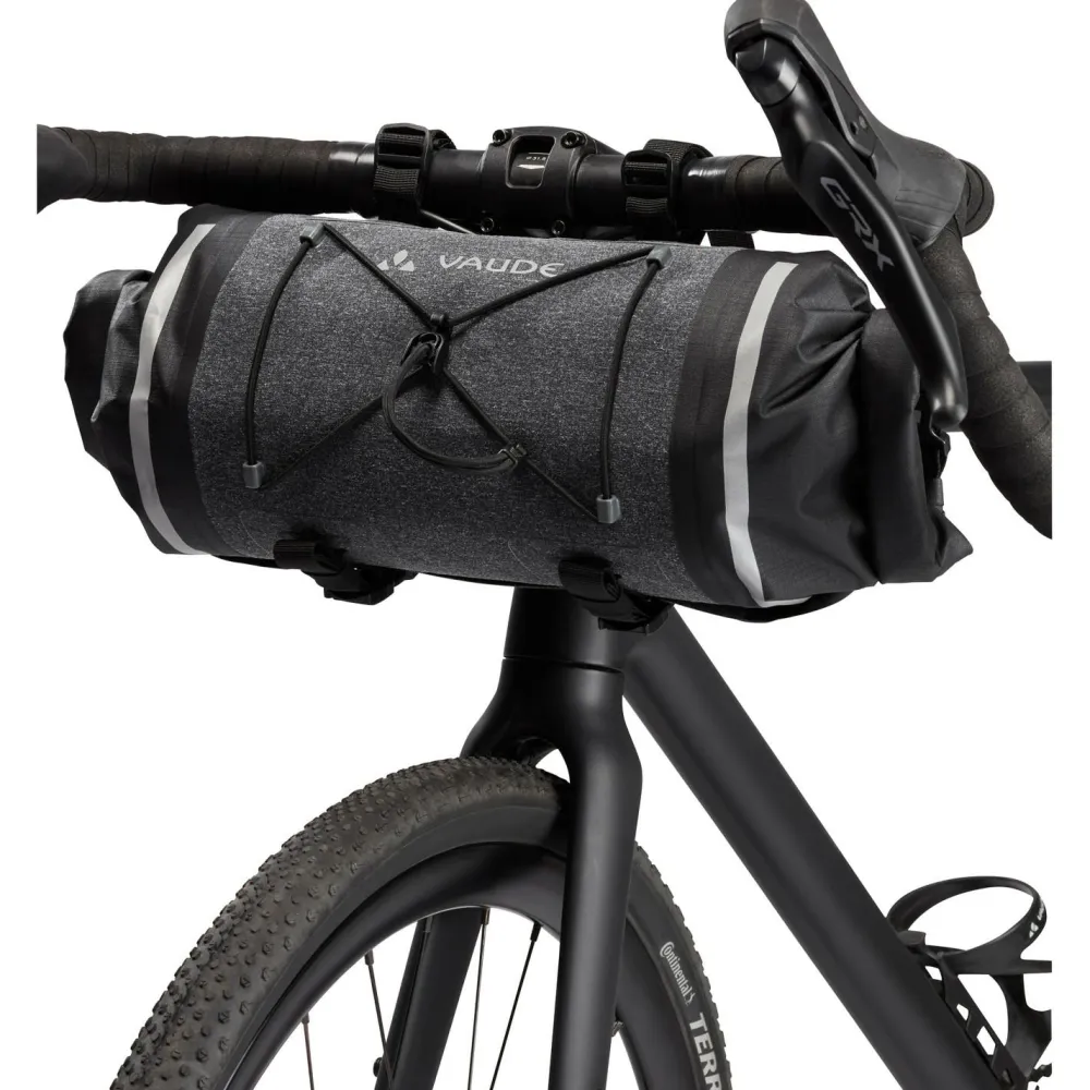 Die Trailfront Compact von Vaude ist eine robuste und wasserdichte Lenkertasche für das Bikepacking. Die Halterung wird mittels Klettbändern sicher und ruckelfrei am Lenker befestigt. An ihr ist ein oben ein praktischer Gummizug zum Verstauen der Windjacke oder Ähnlichem vorhanden.