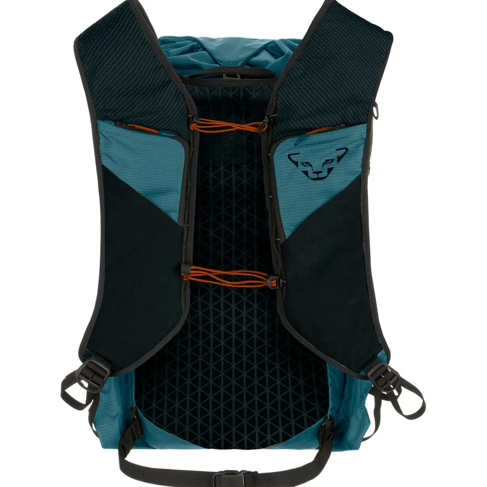 Mit dem Traverse 22 Backpack von Dynafit hat man beim Trailrunning alles Wichtige dabei. Der Rucksack bietet höchsten Tragekomfort, geringes Gewicht und durchdachte Halterungen. Besonders für lange Strecken ist er der richtige Begleiter. An den Schulterträgern gibt es zwei Halterungen für Softflaschen. Auch Gels für schnelle Zwischenmahlzeiten können darin verstaut werden.
