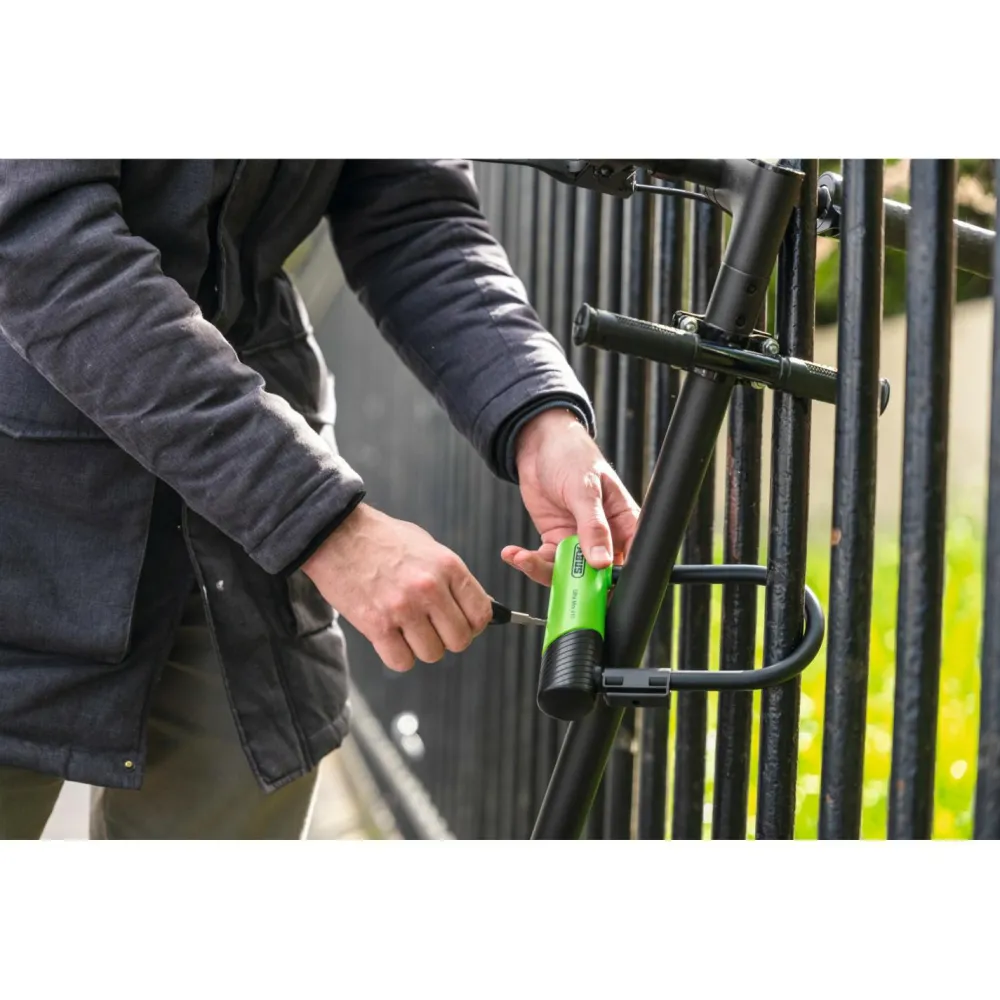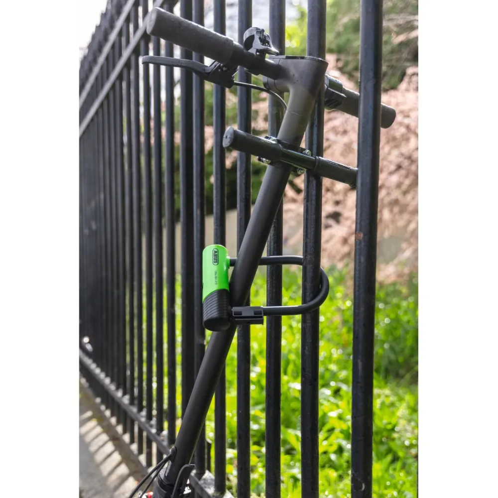 Das Ultra 410K-Fahrradschloss von Abus bietet Dir zuverlässigen Schutz für Dein Fahrrad. Der 12 mm starke gehärtete Stahlbügel sorgt, zusammen mit dem hochwertigen Schließzylinder, für beste Sicherheit, was dem Schloss auch das Testsiegel Sold Secure Silver einbrachte.Das moderne Design und die auffälligen Farben sorgen für gute Sichtbarkeit, während der ergonomische Griff einfaches Handling ermöglicht. Mit der mitgelieferten SH34-Halterung kannst Du das Schloss bequem und klapperfrei an Deinem Zweirad transportieren. In Kombination mit einem Cobra-Kabel kannst Du neben dem Fahrradrahmen auch weitere Komponenten wie Reifen sicher abschließen. Das Ultra 410K ist eine praktische Wahl für jeden Radfahrer.