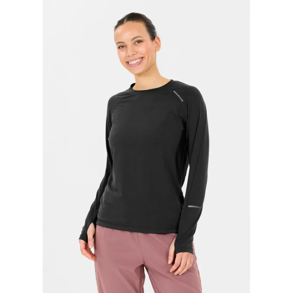 Das weiche Women’s Joan L/S Midlayer Laufshirt von Endurance sorgt mit seinem Kompressionsfaktor für eine verbesserte Durchblutung und damit für gute Regenerationsfähigkeit während und nach dem Lauf. Du kannst es für hochintensive Laufeinheiten im Winter verwenden.