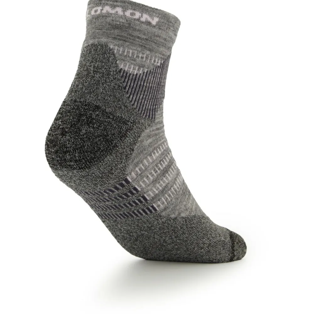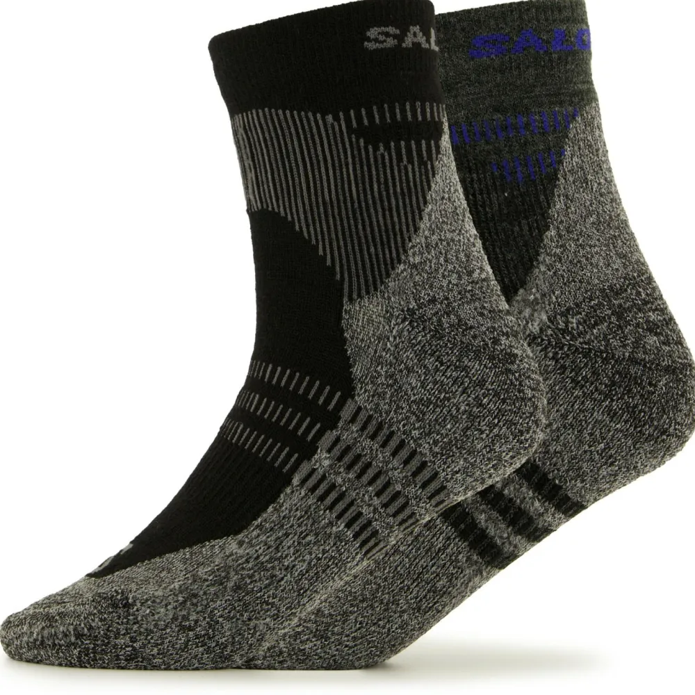Socken für lange Wanderungen – die X Ultra Access Quarter 2-Pack von Salomon. Die kurzen Wandersocken überzeugen durch einen funktionellen Materialmix aus Merinowolle und Kunstfasern. Durch die Merinowolle wird im Sommer Feuchtigkeit nach außen abgeleitet und im Winter wird die Wärme an den Füßen gehalten. Die gepolsterte Sohle aus einem Kunstfasermaterial bietet Dir angenehme Dämpfung und sorgt für ein tolles Tragegefühl.