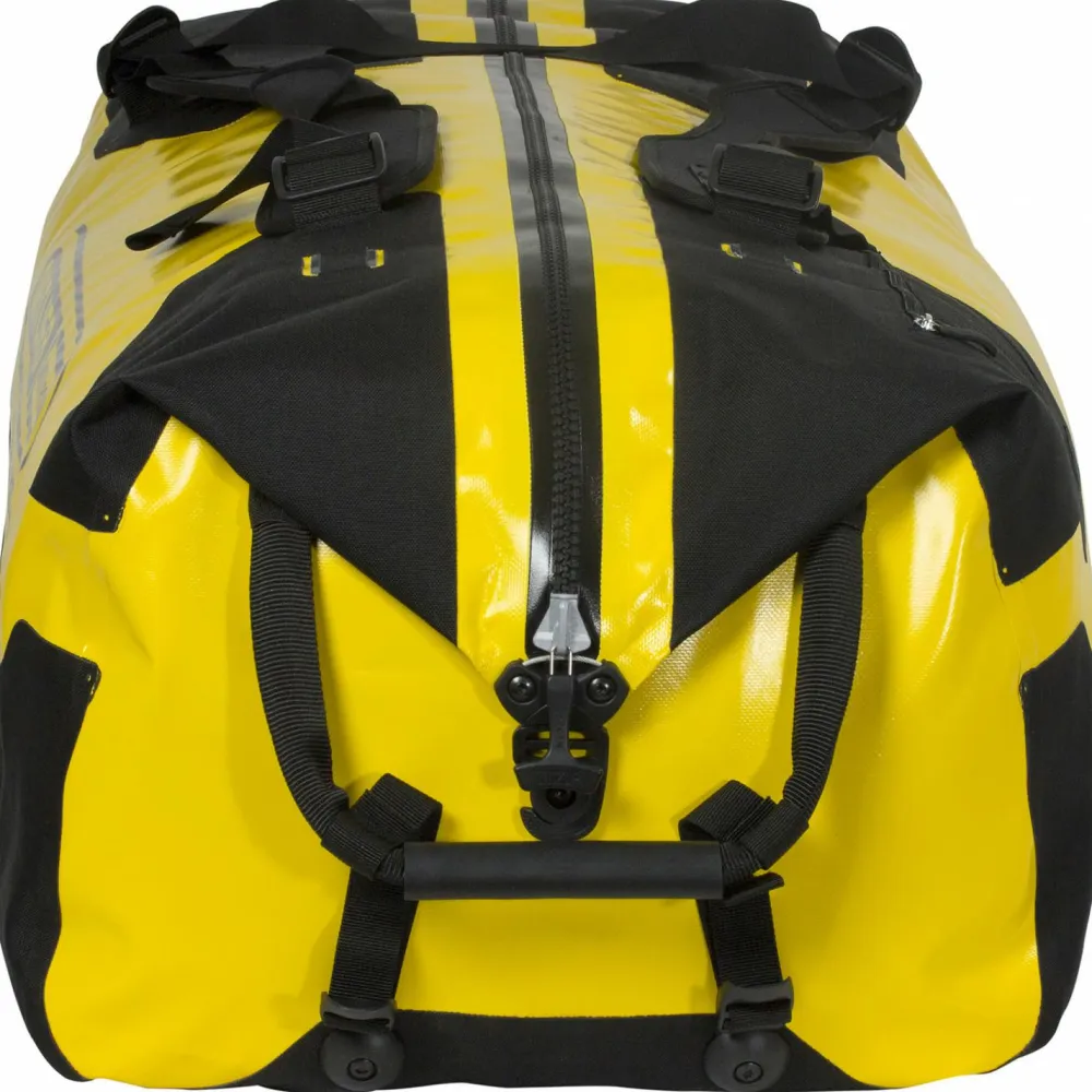 Die Duffle RS 140 von Ortlieb ist eine große, wasserdichte Reisetasche mit der keine Wünsche mehr offen bleiben. Dank ihres Volumens von 140 Litern kann man gefühlt den ganzen Haushalt darin unterbringen. Sie bietet also reichlich Platz, um alles Wichtige für unterwegs mitzunehmen. Dabei kann man die Duffle entweder als eine Art Rucksack tragen – dank der gepolsterten Schulterträger. Wer dies nicht möchte, kann die Schulterträger auch abnehmen und die Tasche mit den Rollen und den Tragegriff ganz einfach hinter sich herziehen.
