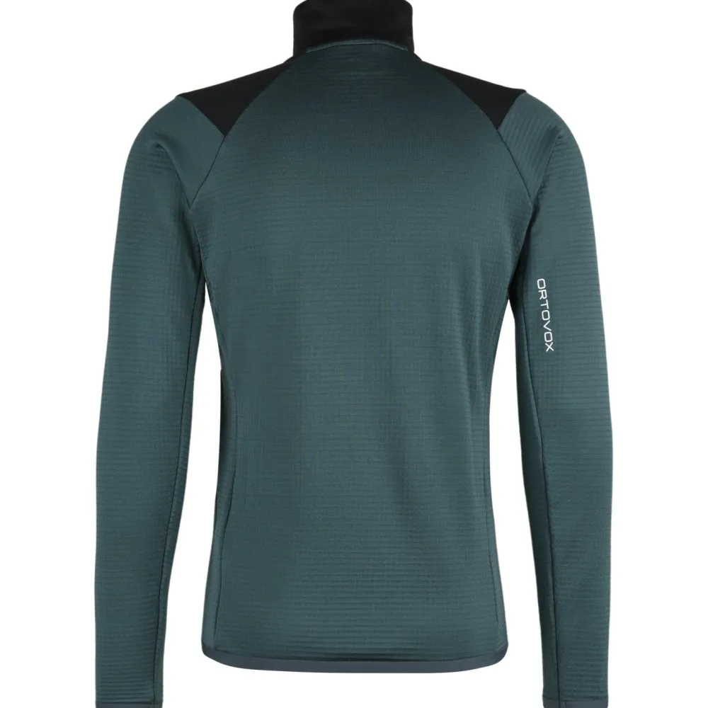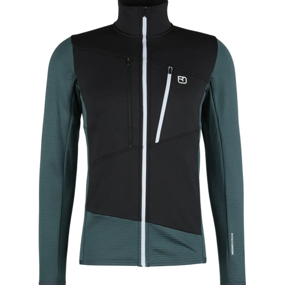 Die Fleece Grid Jacket von Ortovox liegt schon beim ersten Anprobieren angenehm weich auf der Haut und gibt eine gemütliche Wärme ab. Auch wenn es im Gebirge sportlich zur Sache geht und die Schweißperlen auf Skitour ins Rollen kommen, bleibt die Fleecejacke cool. Die strategisch platzierte Waffelstruktur aus Kunstfasern befördert Feuchtigkeit schnell an die Oberfläche und sorgt so für angenehm trockene Bedingungen. Geruchsneutrale Eigenschaften der Merinowolle verhindern auch bei Mehrtagestouren ein unangenehmes Schweiß-Aroma.