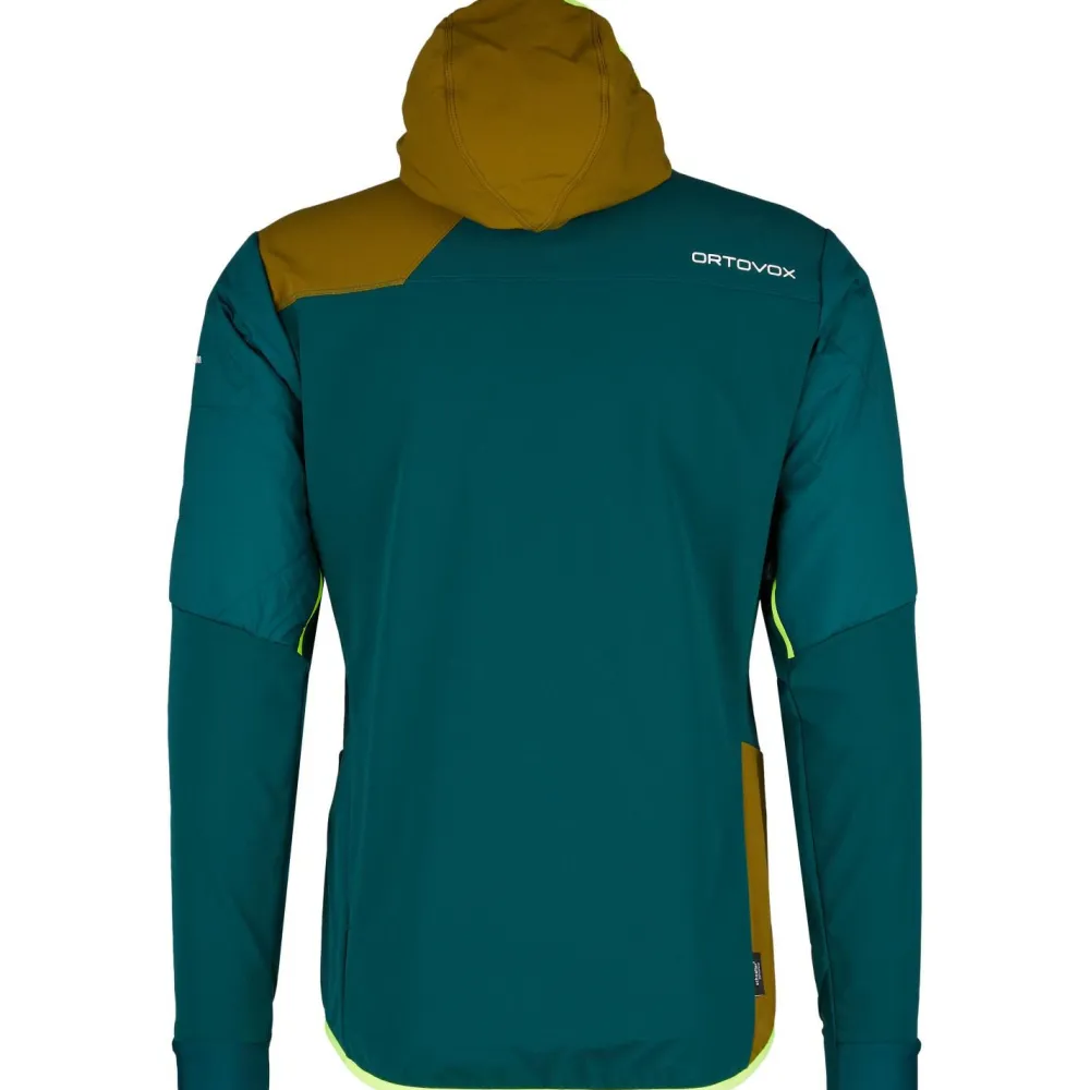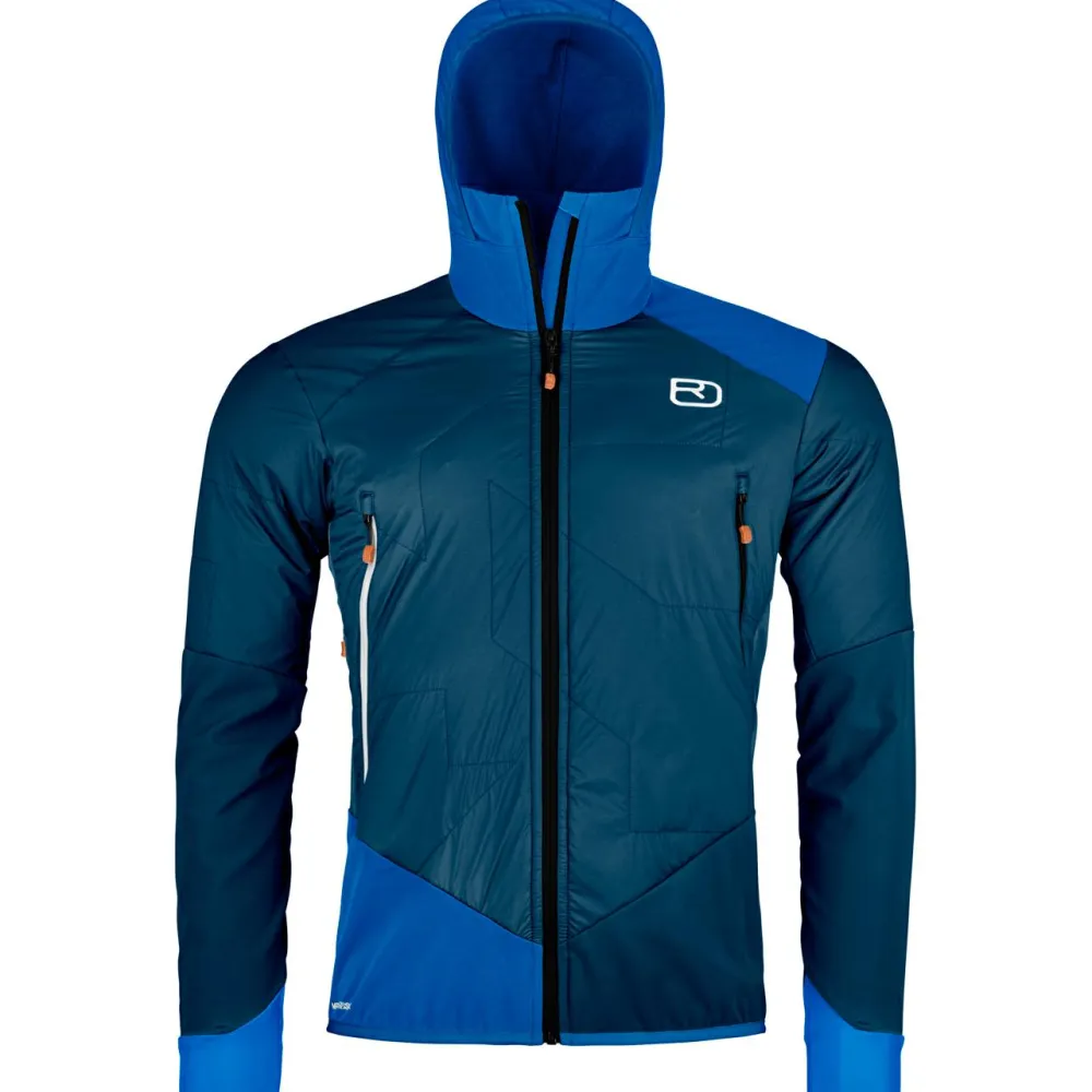 Verlässlich und leicht auf eisigen Hochtouren und Skitouren ist die wind- und wasserabweisende Swisswool Col Becchei Hybrid Jacket Softshelljacke von Ortovox!