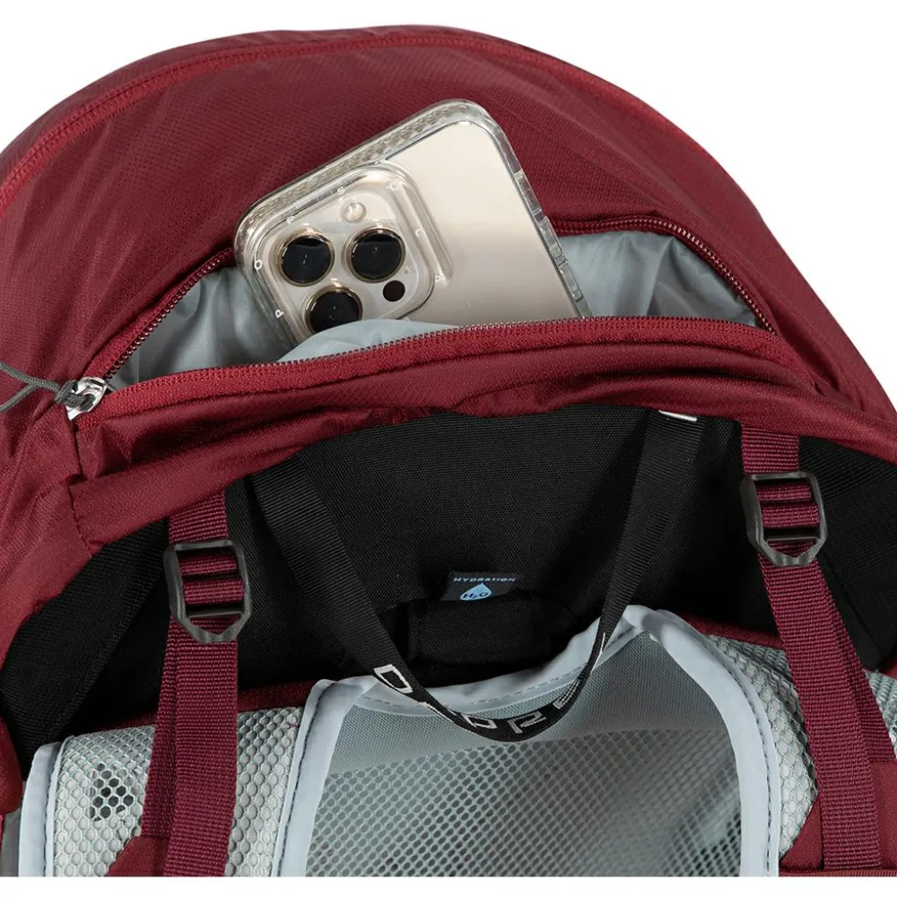 Der Hikelite 28 verfügt über einen stabilisierenden LightWire Rahmen aus Aluminium und seitliche Kompressionsriemen. Ein seitliches Stretch-Fach, ein Innenfach mit Schlüssel-Clip und eine kleine Tasche am Hüftgurt ergänzen den Daypack.