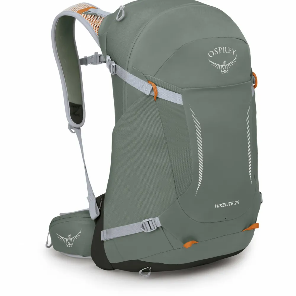 Als Traglast für den Hikelite 28 empfiehlt Osprey 2 – 9 kg Gepäck. Selbst bei anstrengenden Aufstiegen und an warmen Tagen sorgt der Wanderrucksack dabei für angenehme Belüftung an Rücken und Schultern. Dafür sorgen ein luftdurchlässiger Netzrücken und atmungsaktive Schulterträger aus Mesh-Gewebe. Ein höhenverstellbarer Brustgurt mit Signalpfeife und ein gepolsterter Hüftgurt ergänzen das gepolsterte Tragesystem.
