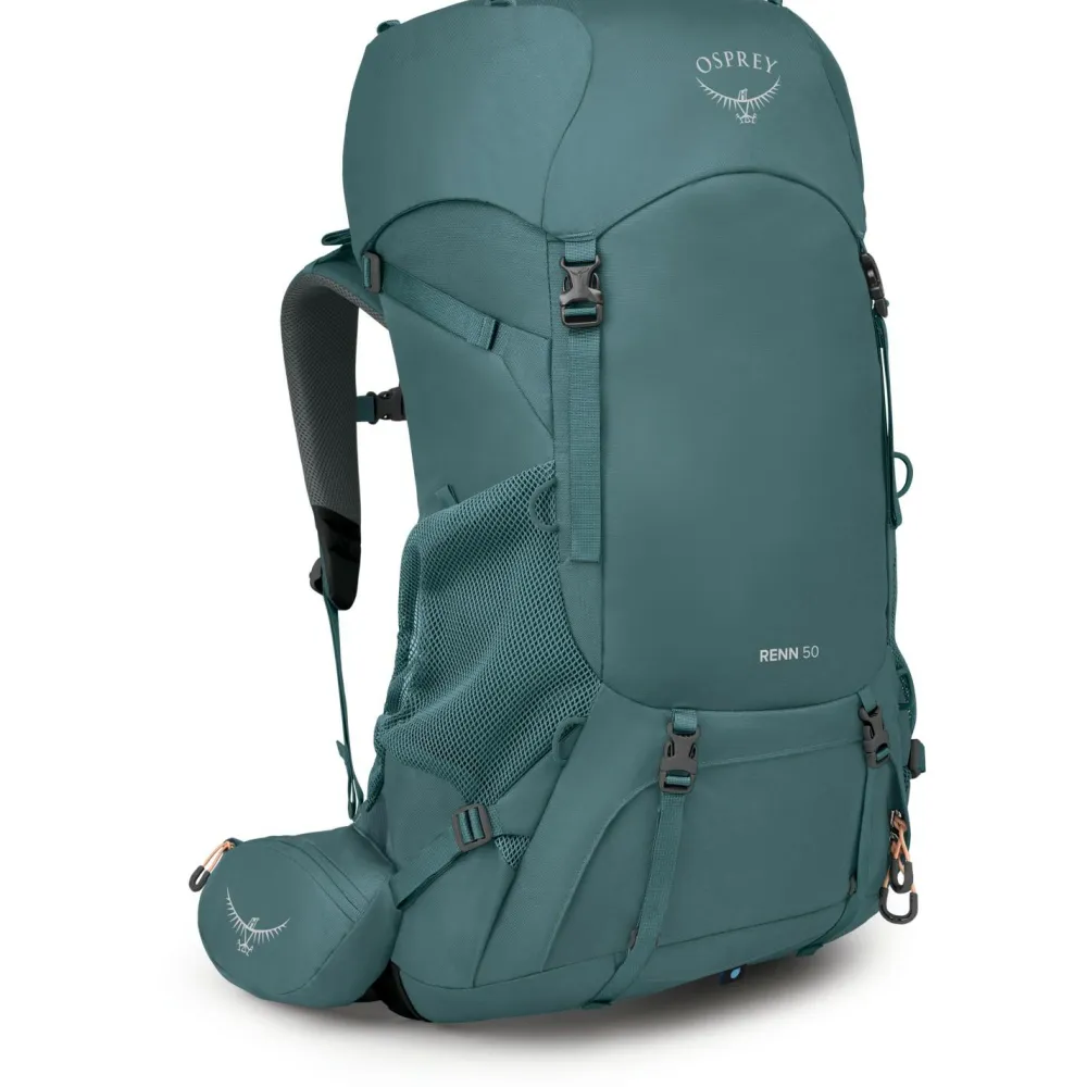 Der hochatmungsaktive AirSpeed Netzrücken reduziert das Schwitzen auf ein Minimum und lässt sich individuell auf verschiedene Oberkörperlängen anpassen, um eine optimale Lastenverteilung zu gewährleisten. Zusammen mit dem angenehm leichten LightWire Rahmen und dem gepolsterten, frauenspezifischen Tragesystem entsteht so ein hervorragender Tragekomfort. Die praktischen Hüftgurttaschen und das separate Schlafsackfach runden das durchdachte Design ab und machen den Renn 50 von Osprey zum perfekten Begleiter für den Trail!