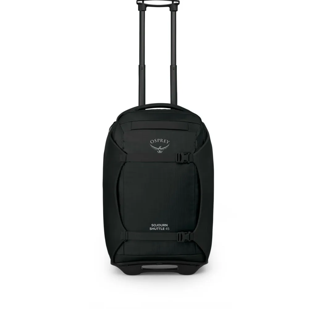 Durch den ausziehbaren Teleskopgriff und den robusten Aluminium-Rahmen lässt sich die Shuttle 45 von Osprey besonders komfortabel transportieren. Das Material für die Reisetasche stammt aus recycelten Fasern und ist nach dem nachhaltigen bluesign approved Standard zertifiziert.
