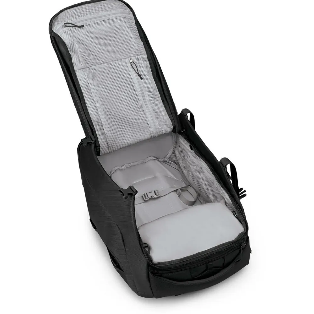 Mehrere Taschen im Inneren sorgen auf der nächsten Urlaubsreise für Ordnung. Die Außentasche mit Reißverschluss lässt sich unterwegs bequem erreichen. Dank der pfc-freien DWR Imprägnierung ist das Obermaterial gegen die Aufnahme von Feuchtigkeit geschützt. Die vielseitige Osprey Shuttle 45 Reisetasche bietet Dir viel Stauraum und macht Deine nächste Flugreise in den Süden zu einer komfortablen Angelegenheit.
