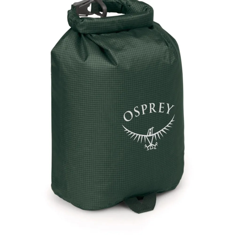 Kleinere Accessoires, die besonderen Schutz vor Schmutz und Nässe benötigen, sind im Ultralight Dry Sack 3 Packsack von Osprey bestens geschützt. Der ultraleichte Packsack wiegt lediglich 28 g und wird mit einem zuverlässigen Rollverschluss sicher verschlossen.