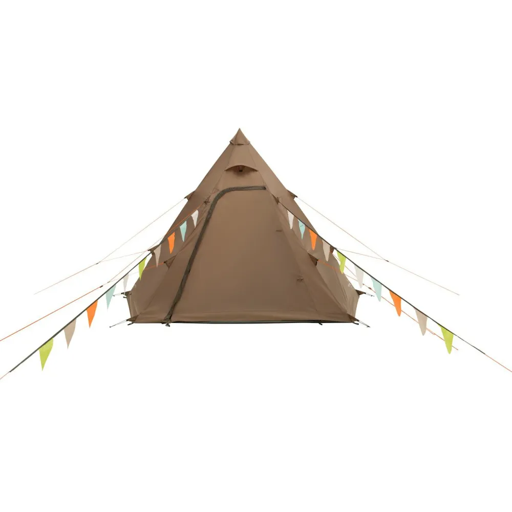 Aber auch auf praktische und schicke Details musst Du beim Otra Tipi nicht verzichten. Hierzu gehören beispielsweise mehrere Lüftungsöffnungen, die für eine optimierte Luftzirkulation im Zelt ermöglichen. Die vorderen Abspannleinen des Zelts sind mit kleinen Fähnchen ausgestattet. Das sieht nicht nur gut aus, sondern sorgt auch für eine bessere Sichtbarkeit der Schnüre.