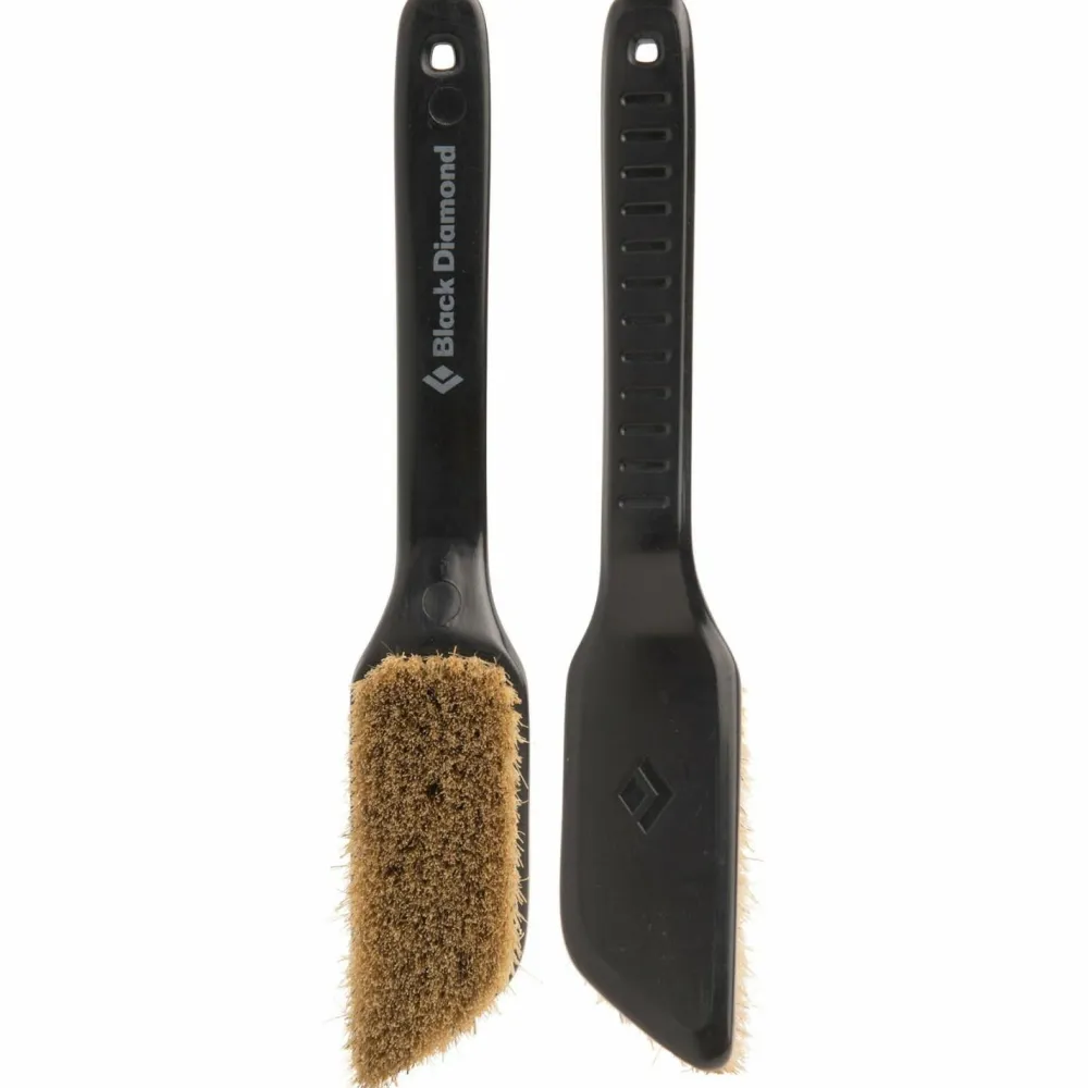 Wenn Griffe oder Tritte gereinigt werden müssen, dann ist die BD Boars Hair Boulderbürste das richtige Werkzeug dafür. Mit dem abgeschrägten Bürstenkopf können auch enge Stellen erreicht werden. Der Griff der Brüste ist ergonomisch geformt. So ist das Risiko geringer, dass man sich beim Abbürsten die Fingerknöchel am Fels aufreibt.