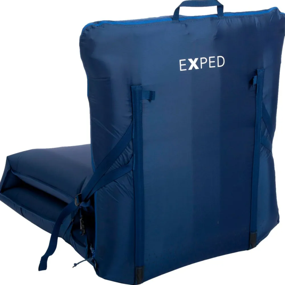 Beim Chair Kit von Exped handelt es sich um eine Schutzhülle für die Isomatte, die mit wenigen Handgriffen aus der Matte einen bequemen Sitz oder eine Couch macht. Der Chair Kit ist koppelbar mit weiteren Chair Kits. Abgesehen davon gibt es diese Hüllen für fast alle rechteckigen Mattengrößen von Exped. Der robuste Oberstoff ist hautfreundlich, das Material des Bodens dagegen PU-beschichtet mit einer Wassersäule von 10 000 mm. Über einen Reißverschluss kann man die Matte rasch beziehen oder die Schutzhülle entfernen – beispielsweise zum Waschen.