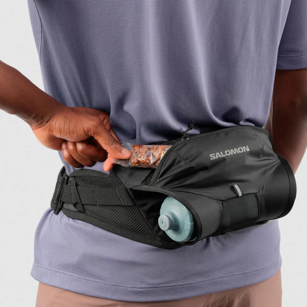 Mit nur etwa 250 Gramm Gewicht und einem Volumen von 1 Liter spürst Du die Cross Belt 1 Bottle kaum – sie schmiegt sich dank ihrer kompakten Maße von 32 x 15 cm angenehm an Deine Hüfte. Das Tragesystem mit Hüftgurt garantiert einen festen Sitz, sodass nichts verrutscht, selbst wenn es mal schneller zur Sache geht. Salomon bringt hier seine Erfahrung aus dem Profisport ein: Die ergonomische Passform und das durchdachte Design sorgen für Komfort und Bewegungsfreiheit bei jedem Schritt.